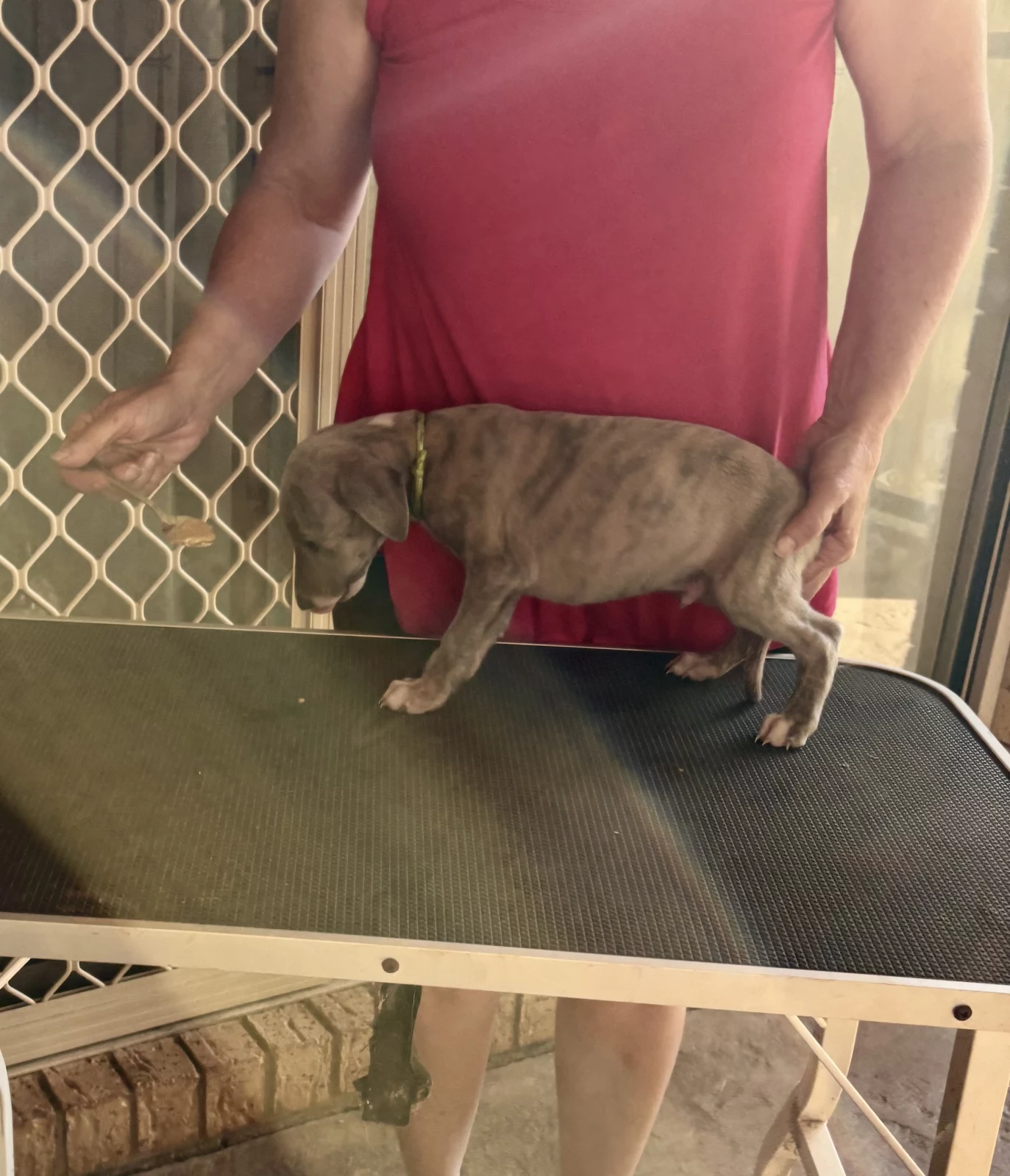 Male fawn brindle puppy avail to a pet home, 9 weeks old, bred from well known show lines. Ready for his new home now.
