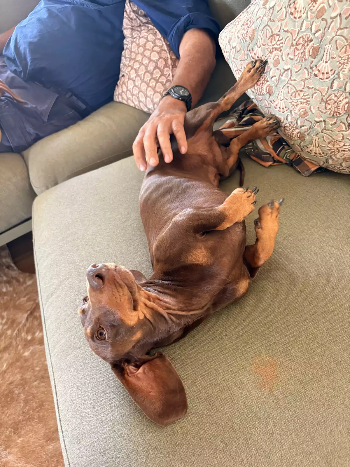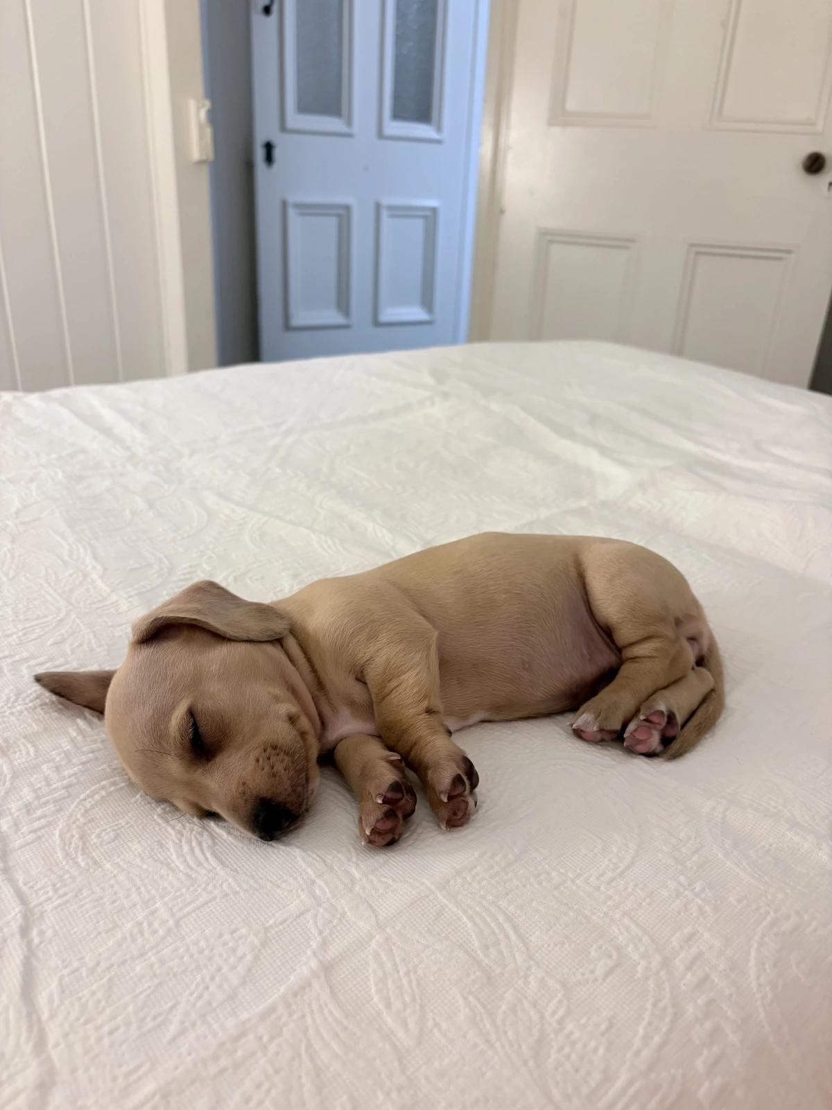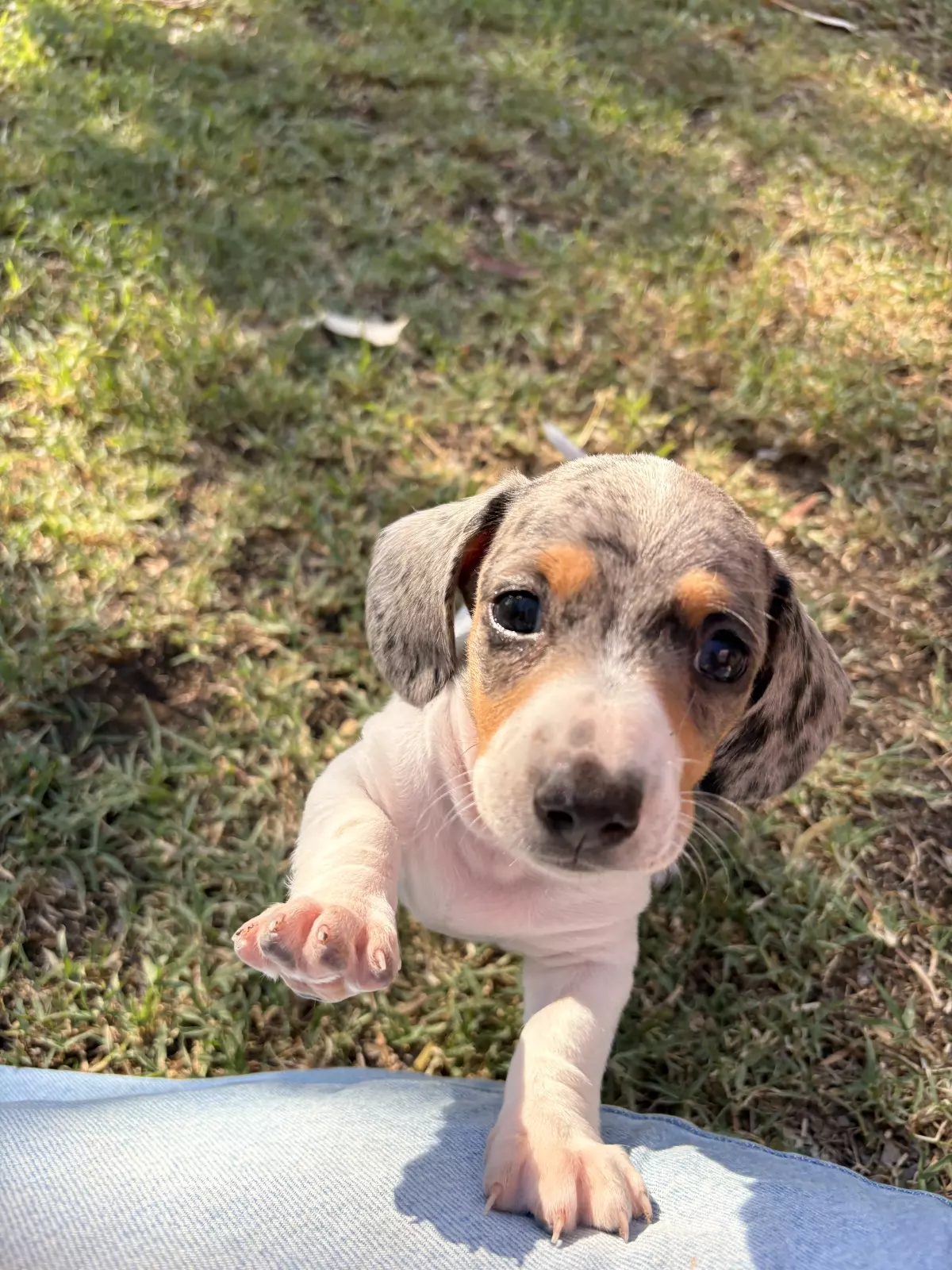 Toilet and crate training since 4 weeks old. Active socialisation with children, other people and reactive sounds. Familiar with our other extended familys’ dogs and household cat.