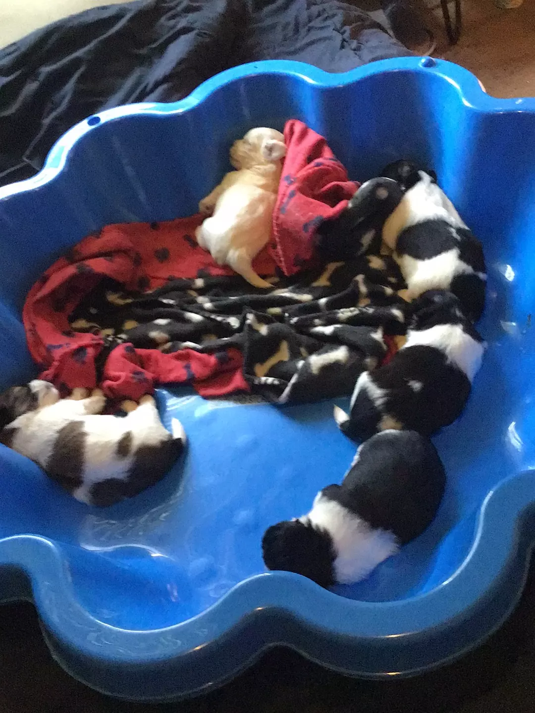 Dogs have access to: warm bedding, water at all times, ample space to exercise, natural light