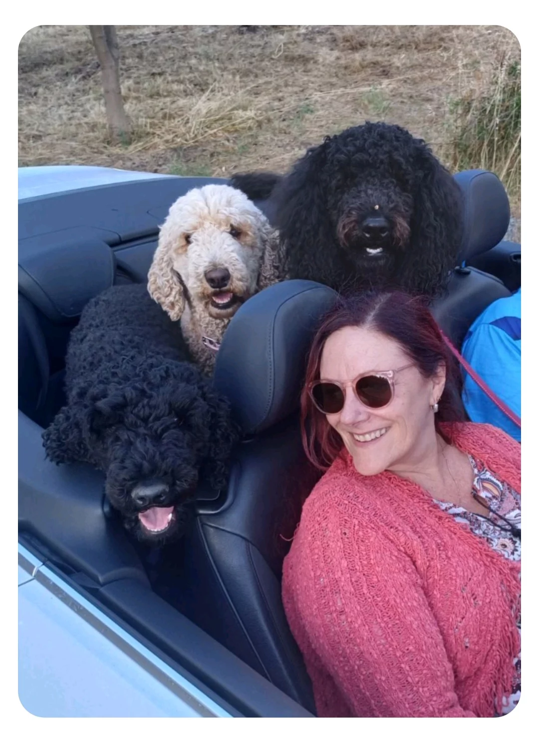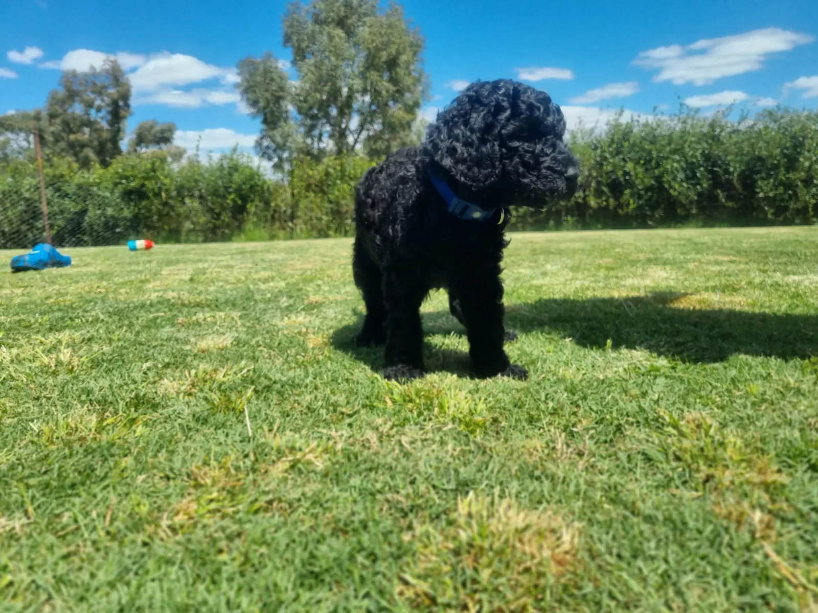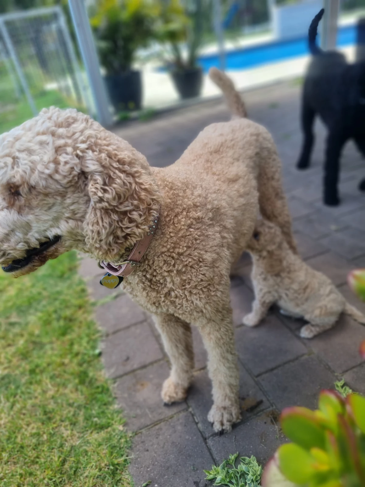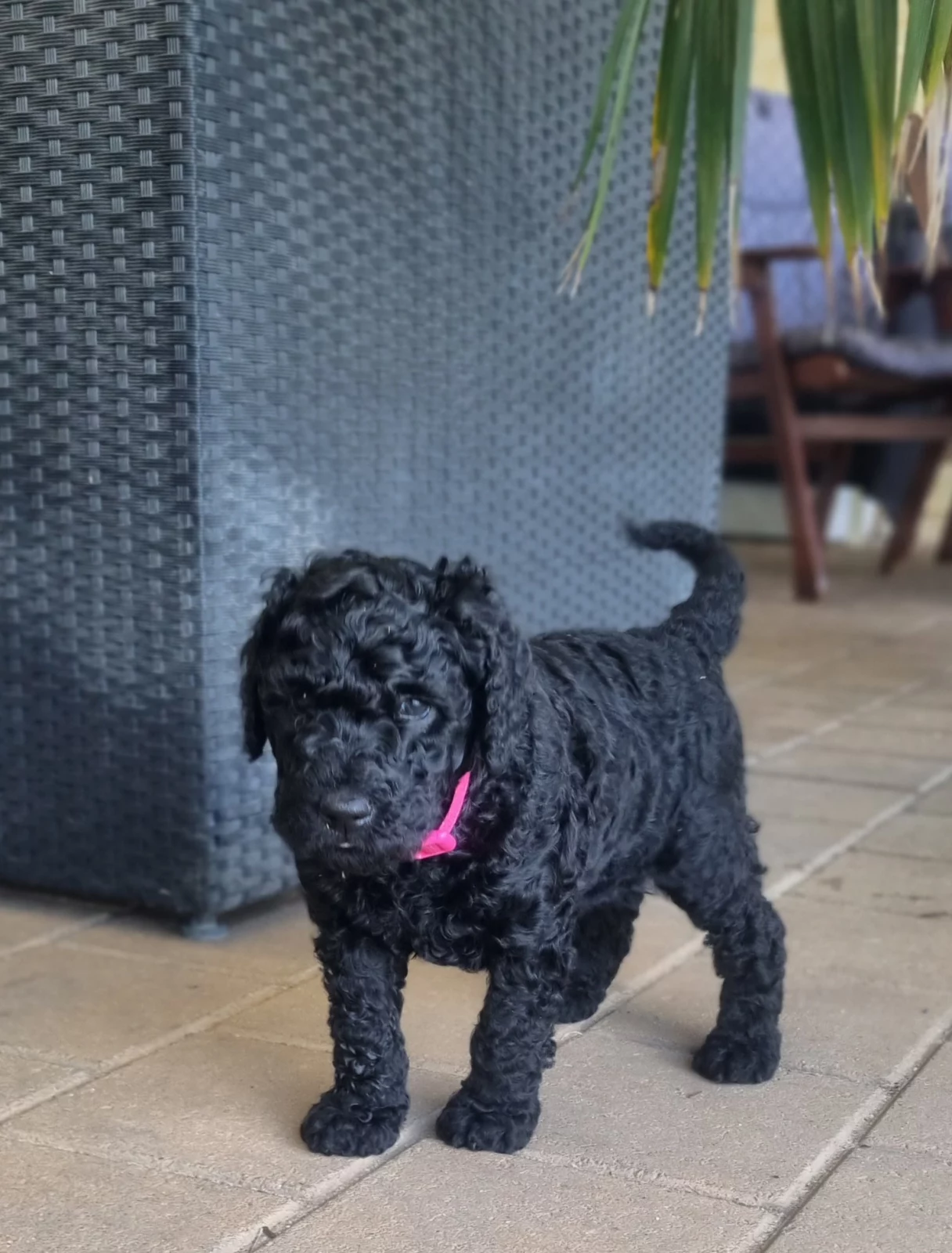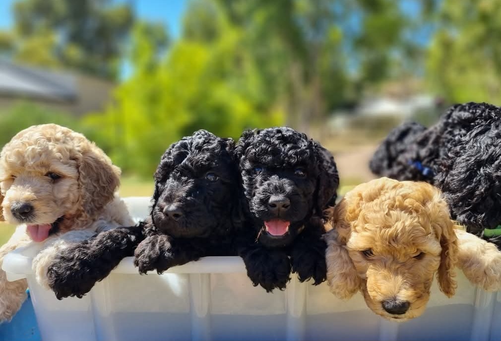 Standard Poodles are hypo-allergenic and don't shed fur. They are intelligent and friendly, enjoy a daily walk and love to be in the house with their family. Poppy and Boboloski are the proud parents of our litter and have been DNA tested and cleared of all 250 diseases tested for. You can see their picture with their older daughter Lulu in the last photo. We have a caramel boy, 2 black boys and 2 black girls available and ready to go home at the end of October.
