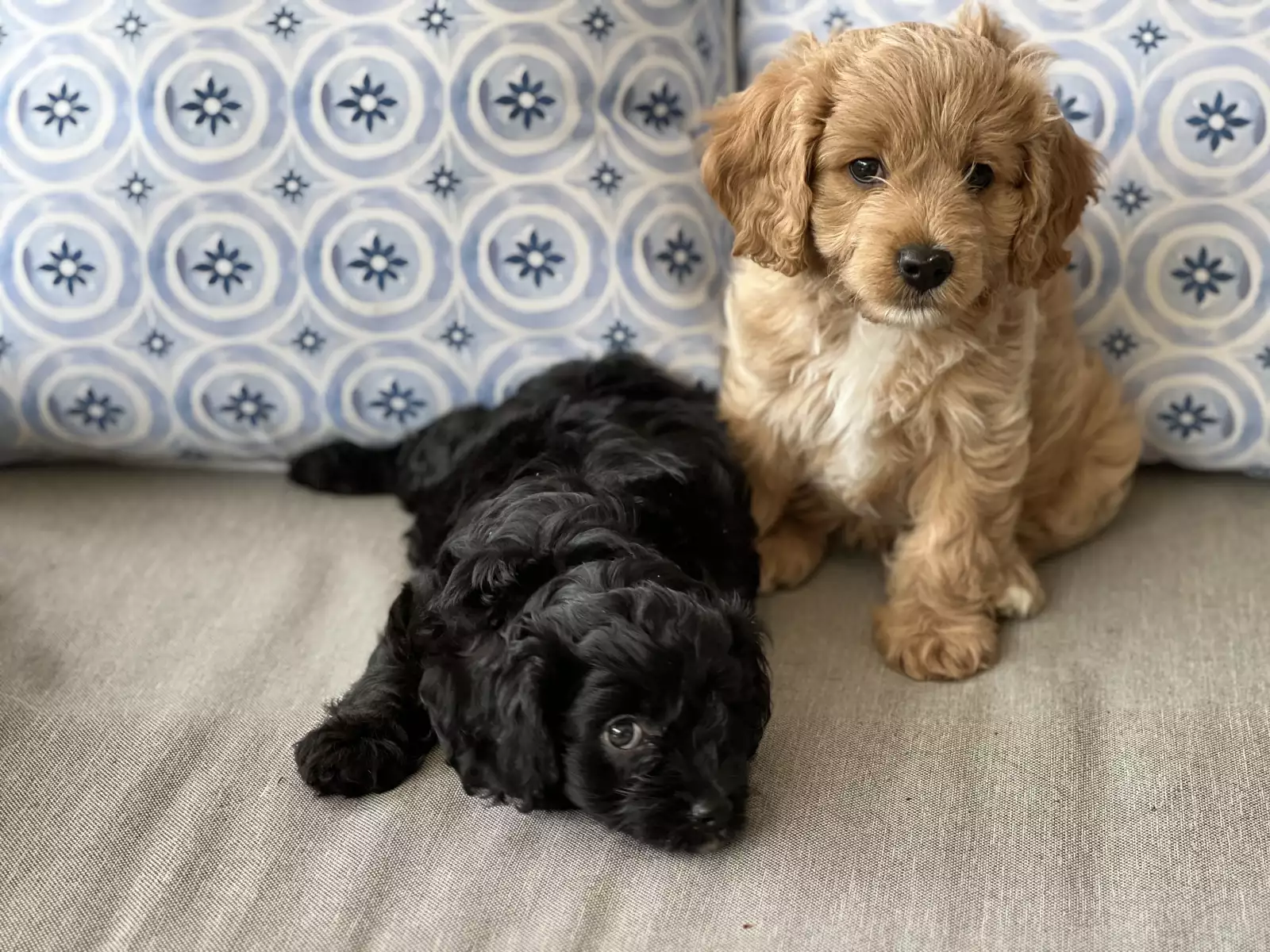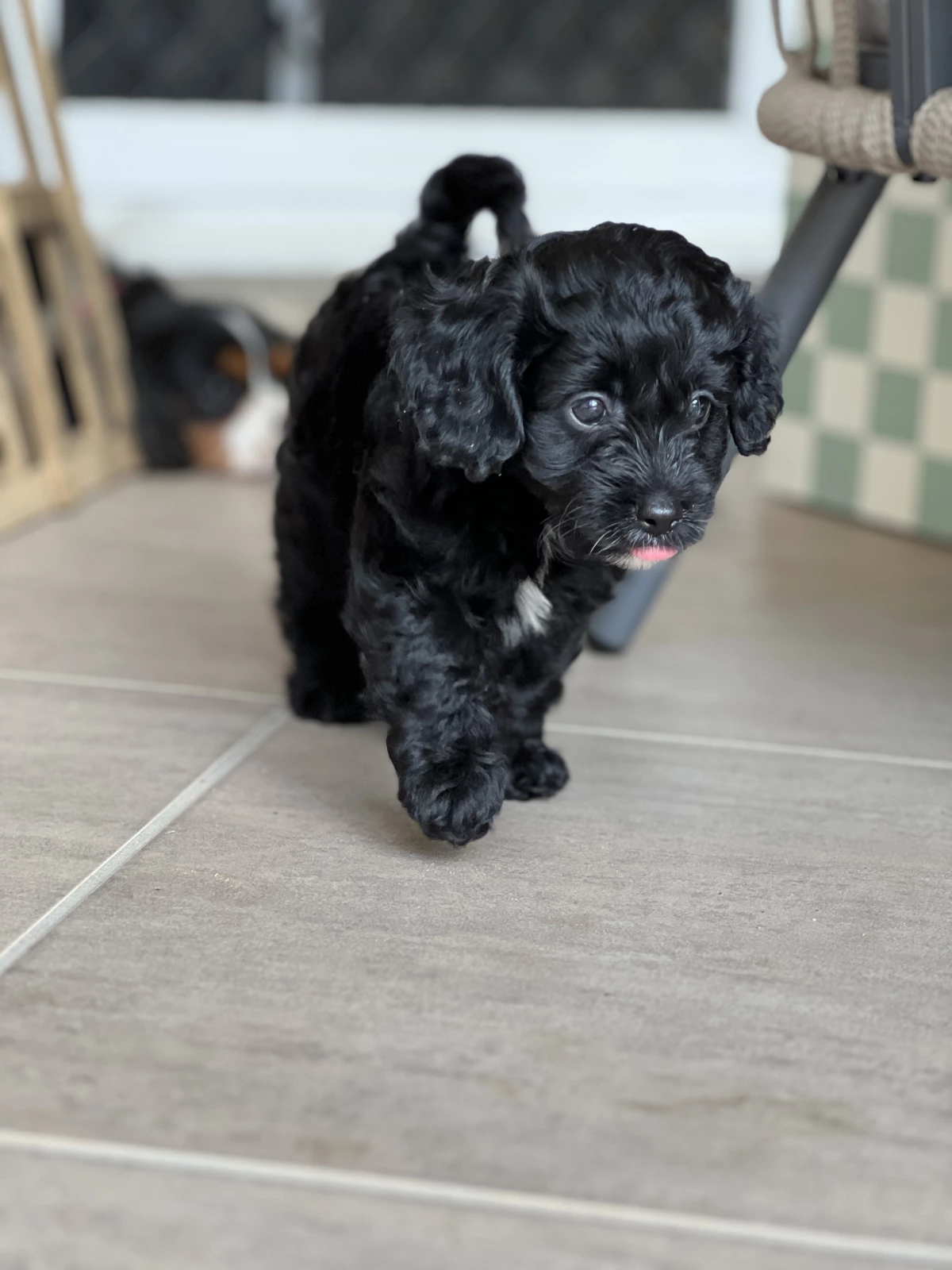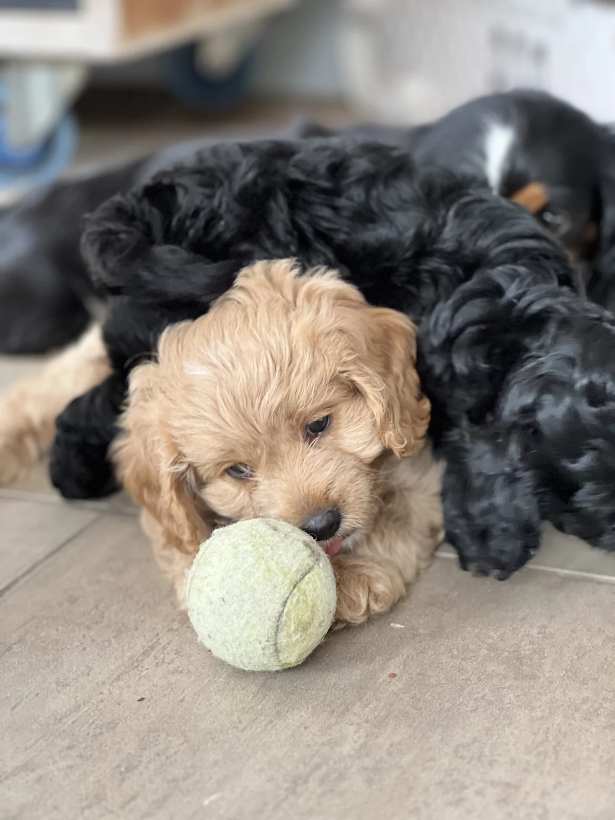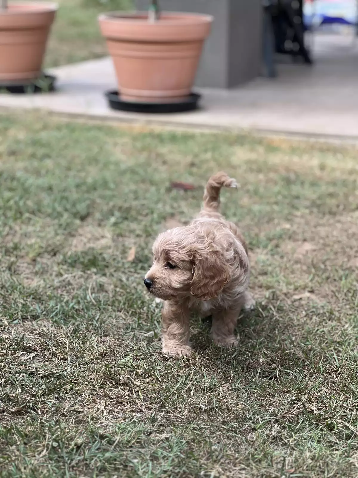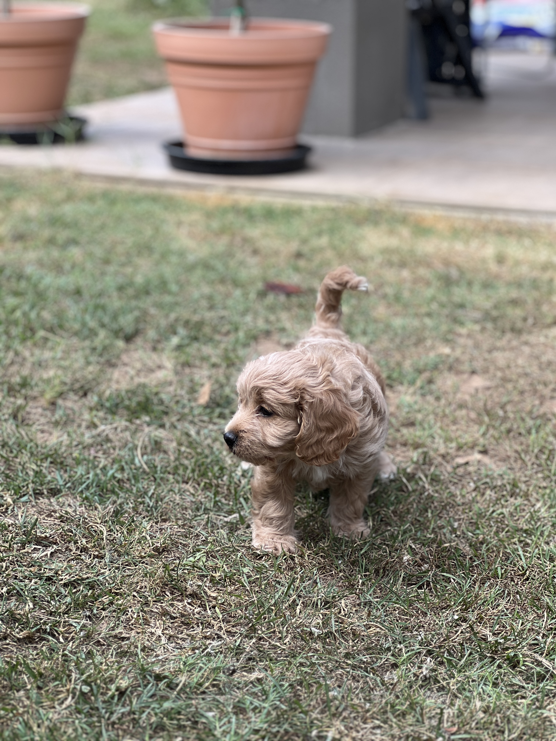 Meet our adorable cavoodle puppies, raised in a lively family of six with four energetic boys, so they’re well-loved and used to plenty of attention! We have two male Cavoodles, 7 weeks old—one a beautiful tan and the other a striking black with a white chest. These very happy, playful little guys absolutely love attention and are curious explorers who enjoy investigating new things. They get along wonderfully with other dogs and people of all ages, including kids. They happily crunch on quality dog biscuits, enjoy daily backyard adventures, and are regularly socialized with other dogs and people. From an early age, they’ve had lots of fun stimulation with different toys and random household objects, helping them grow into confident, friendly companions. Their sweet routine is simple—eat, play, and nap in their cozy puppy playpen—ready to bring joy and cuddles to their new forever homes.