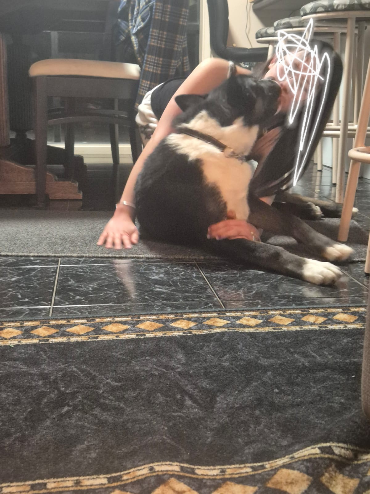 He is 1 yr old Alaskan Malamute cross staffy, he is a gentle giant with a big heart..
