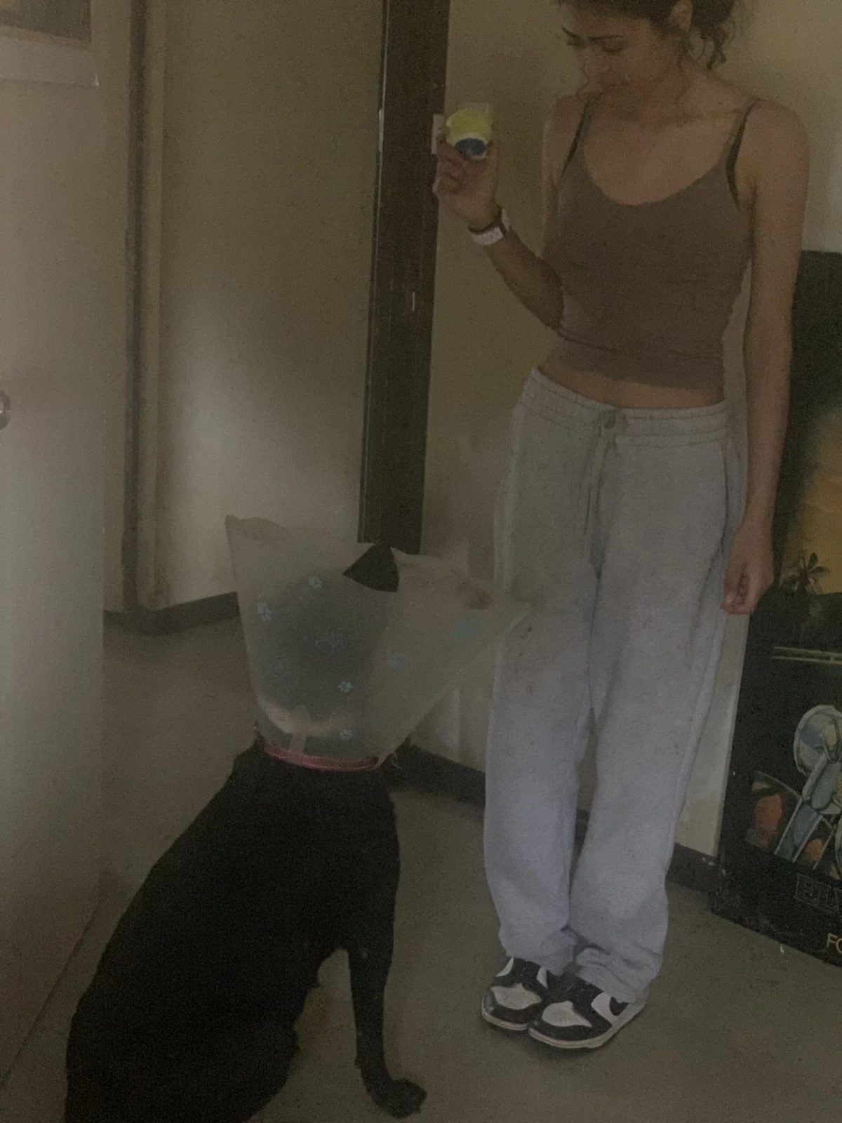 Dogs have access to: warm bedding, water at all times, ample space to exercise, natural light