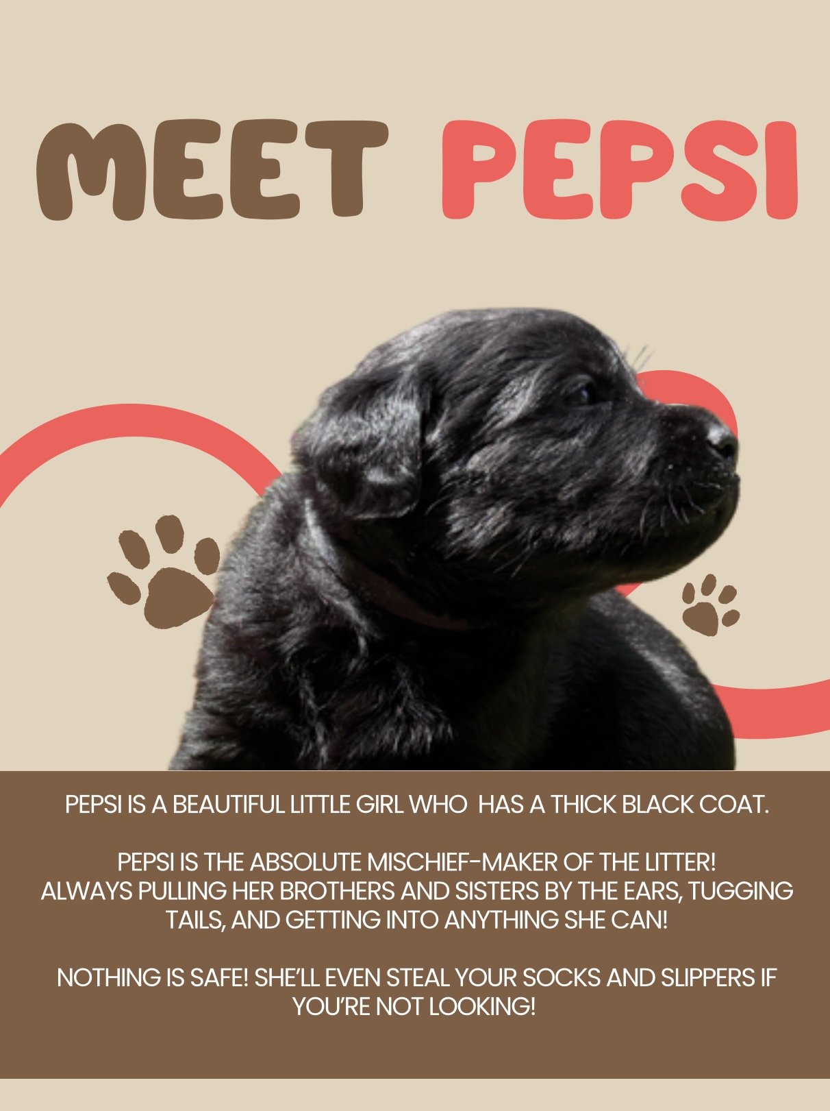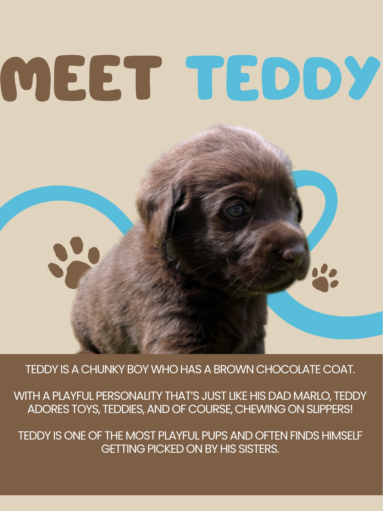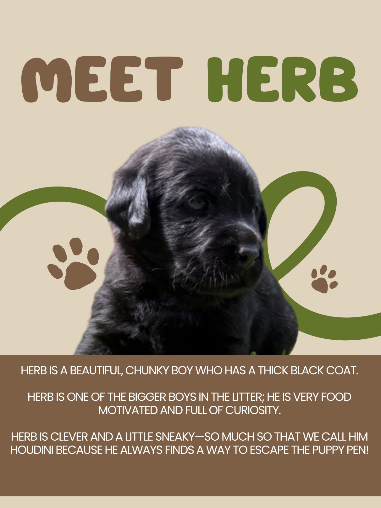 An “All About Me” section unique to each puppy, detailing their personality and milestones