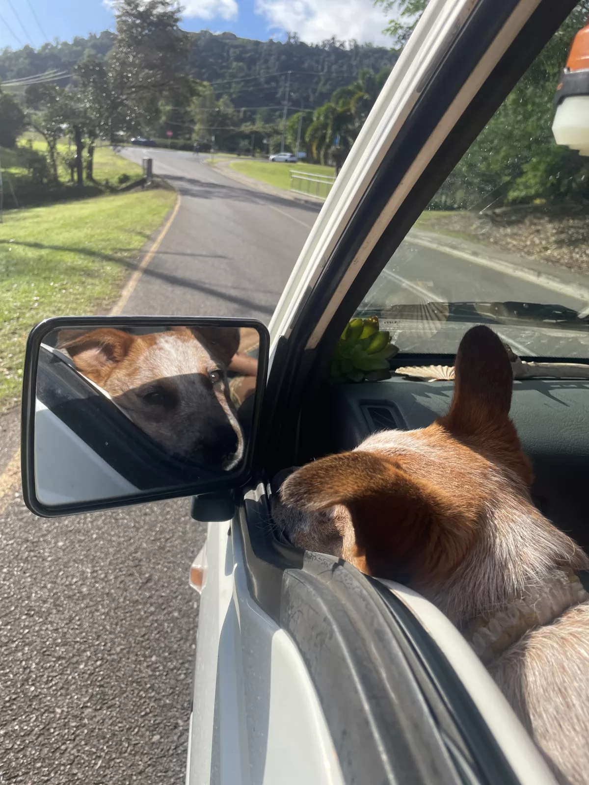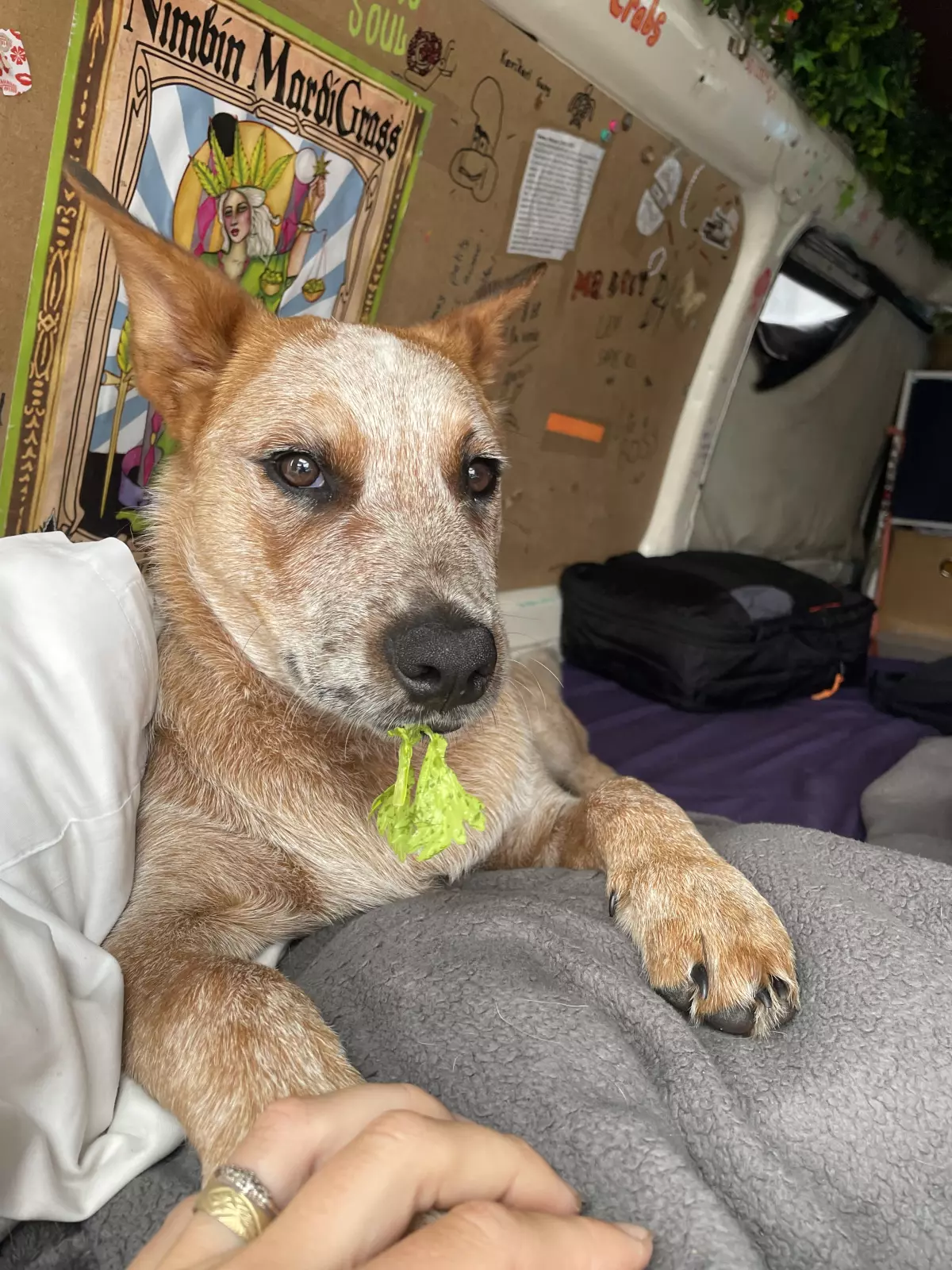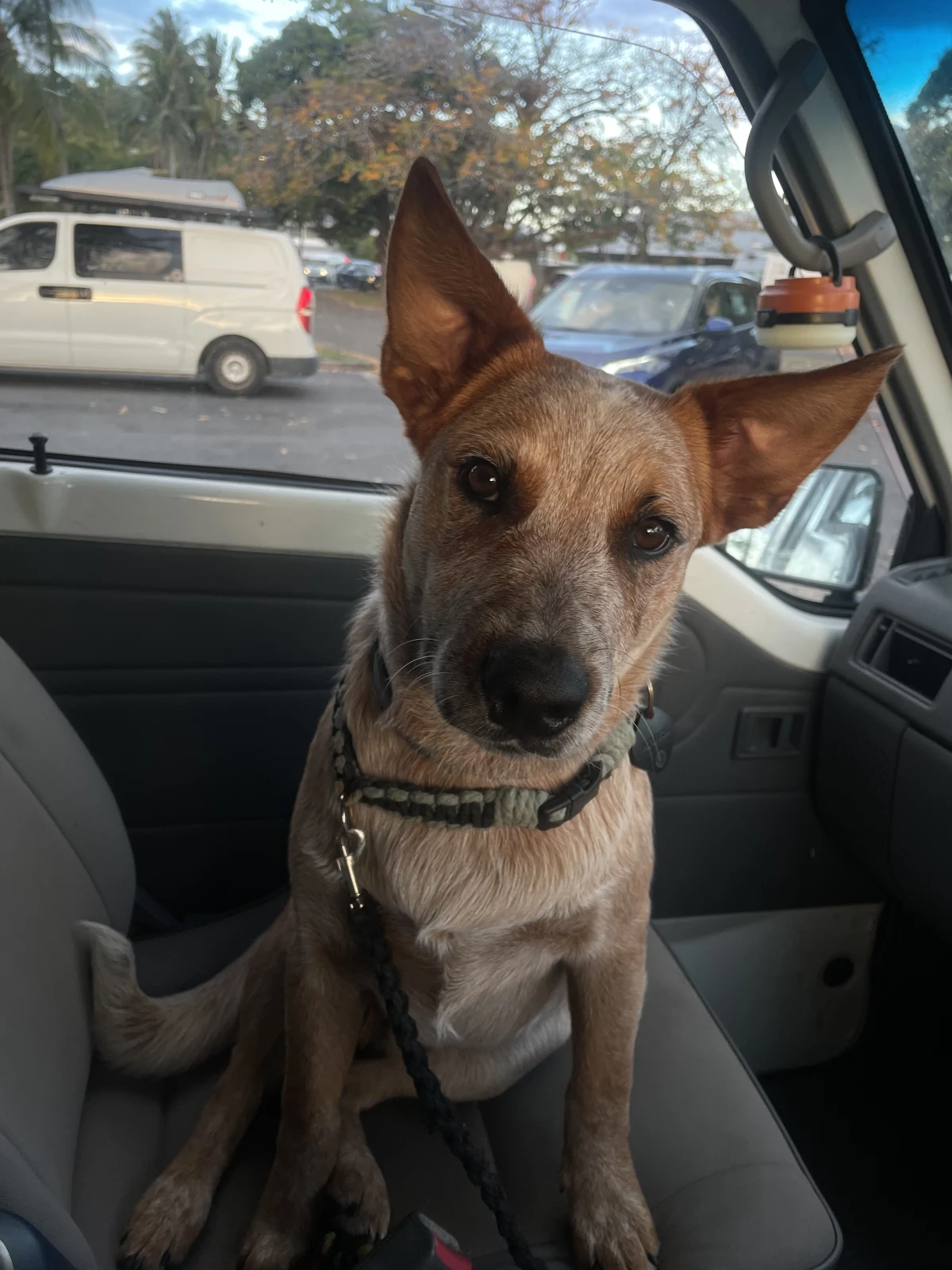 Maracuja life's his best life at the moment. He's on a roadtrip with me and my friend and he saw the whole eastcoast of Australia. He's used to spend his whole day outside, learning new things, sniffing Australians nature. He gets biscuits twice a day and whatever leftover we have (chicken, rice, fish,...). He found himself a little space under our bed (like a dark corner) where he loves to sleep. He also likes hiding/ sleeping under our van, if it gets too hot during the day.