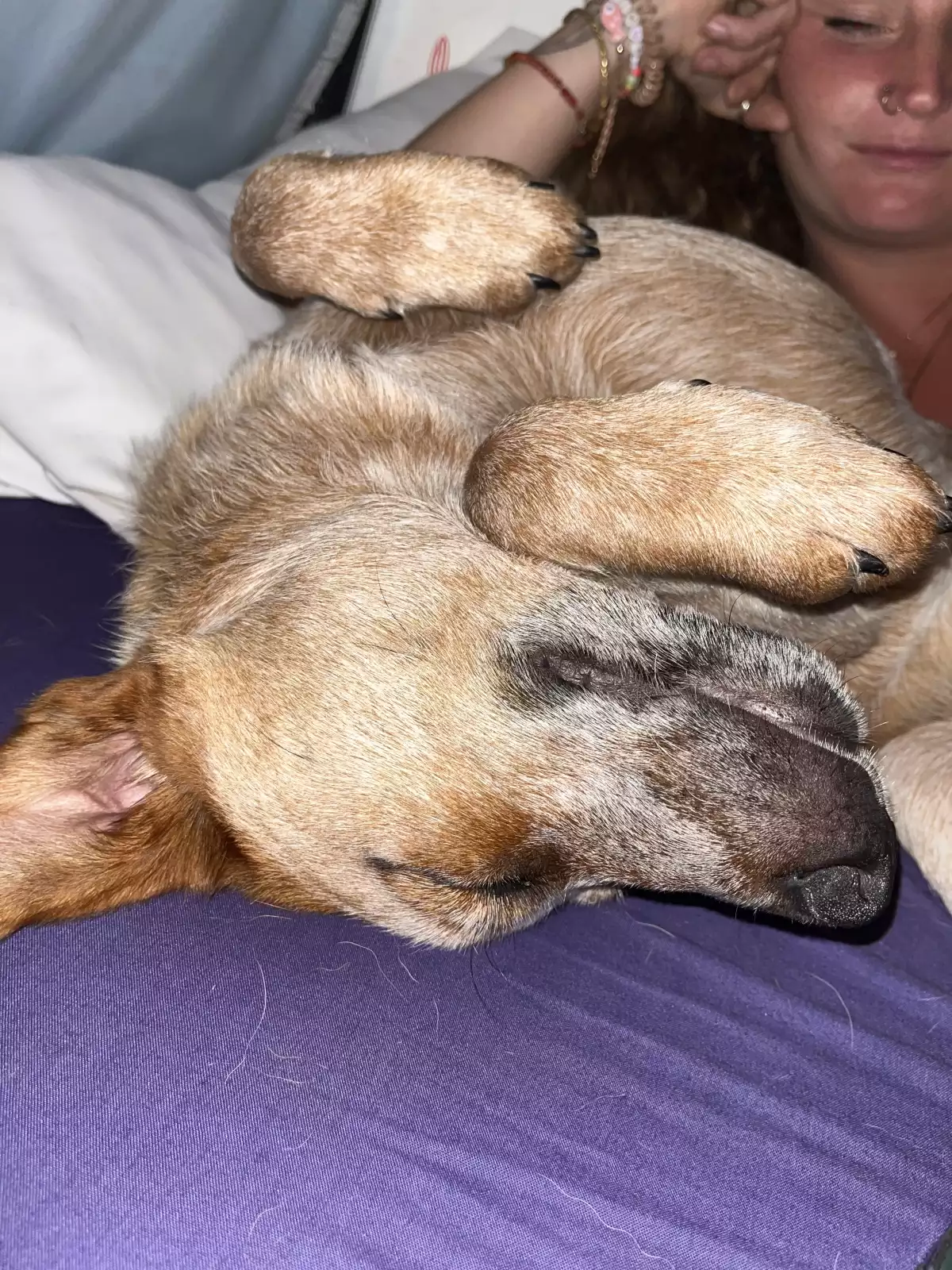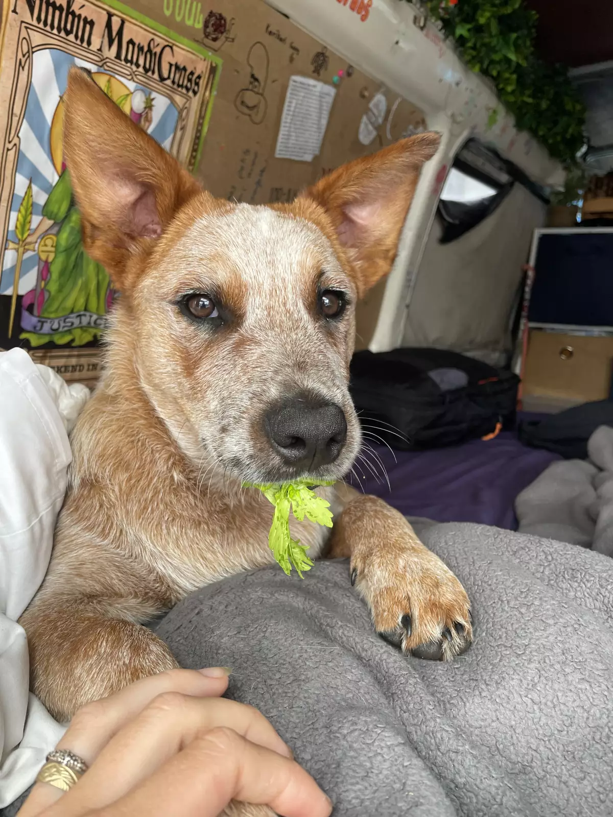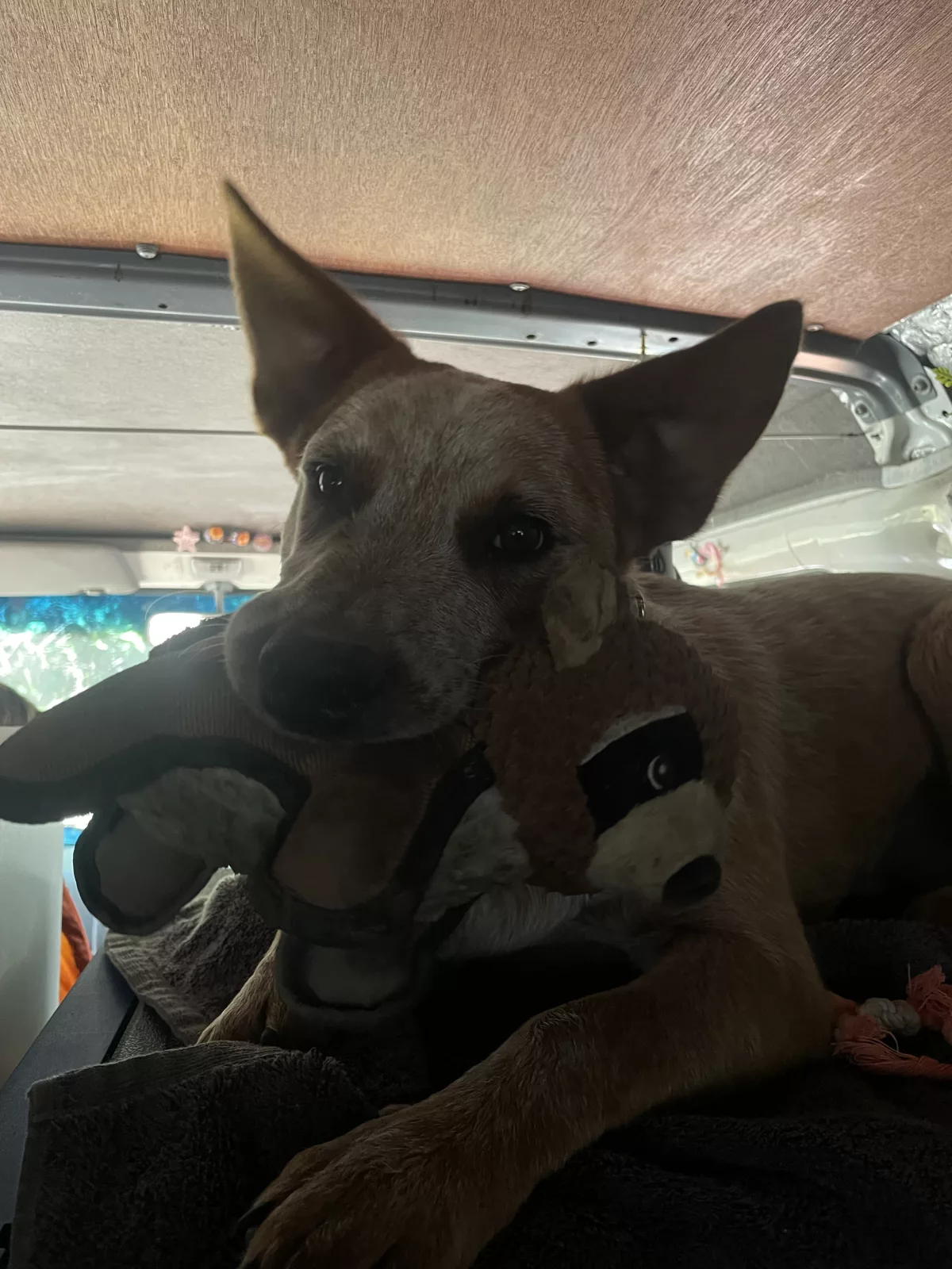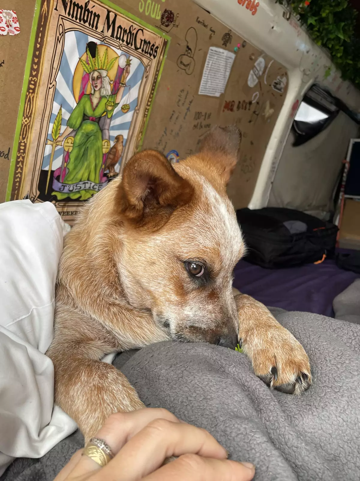 Maracuja life's his best life at the moment. He's on a roadtrip with me and my friend and he saw the whole eastcoast of Australia. He's used to spend his whole day outside, learning new things, sniffing Australians nature. He gets biscuits twice a day and whatever leftover we have (chicken, rice, fish,...). He found himself a little space under our bed (like a dark corner) where he loves to sleep. He also likes hiding/ sleeping under our van, if it gets too hot during the day.
