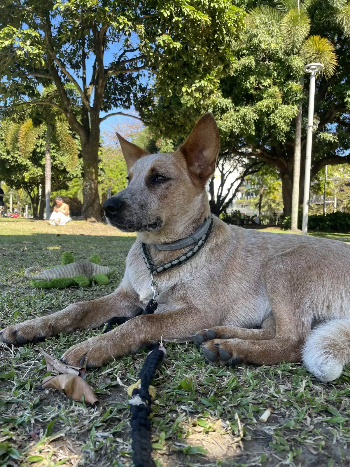 He's a beloved dog and I want to make sure the new owners gonna treat him with respect and love. Once he got to know you, he'll never stop loving you. That's what red healers are like. They're really loyal. Which makes it even more harder to let him go. He just figured out that dogs aren't a threat to him. He loves to play with them and doesn't show any signs of aggression. Talking about people... he needs a certain amount of time to get used to new people. We got him with the age of 4 months and we don't know how he'd been treated before but he's really shy if new people enter his life. But nothing that can't be fixed with time and patient.