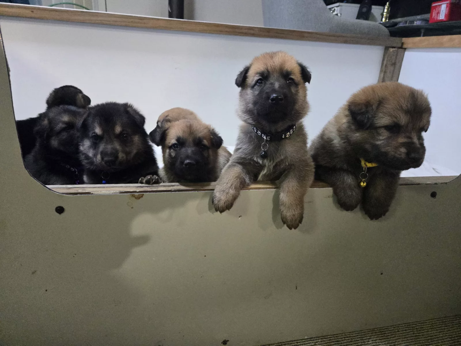7- How many animals are you selling and Northing beats the love, loyalty and security of a GSD! These puppies have been raised in a family home, so they are used to noise and movement, people, families, vacuum cleaners etc. Mum is a pure bred, blanket back shepherd, Dad is a magnificent, pedigree, white pure bred GSD. Both working line ( straight back, for an easier explanation) I do not have papers for my girl, as she was bred as a pet, as these puppies are. These puppies were born on WED 10TH SEPT 2025. They will not be going anywhere before 8 weeks. As the mother does not have the White gene, the majority of these puppies are " fawn". Please see pic of an elder sibling to see how they will look when grown. Their personalities are starting to come through now. They will only be going to approved homes, ie secure, fenced yards, sleeping areas, and indoor/ outdoor areas.