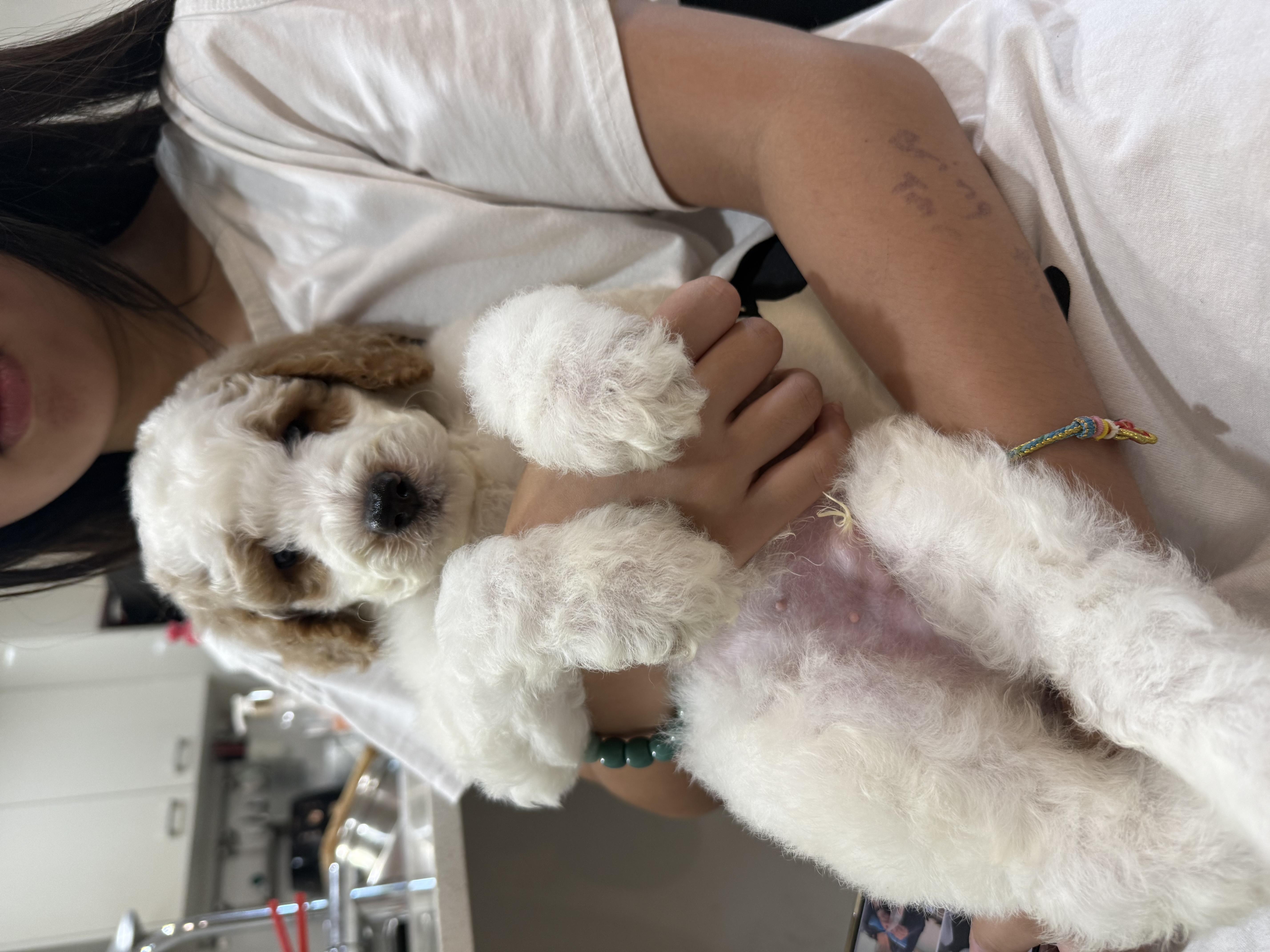 Both puppies have sweet, gentle temperaments and love being around people. They are affectionate, people-oriented, and very suitable as family companion dogs.
