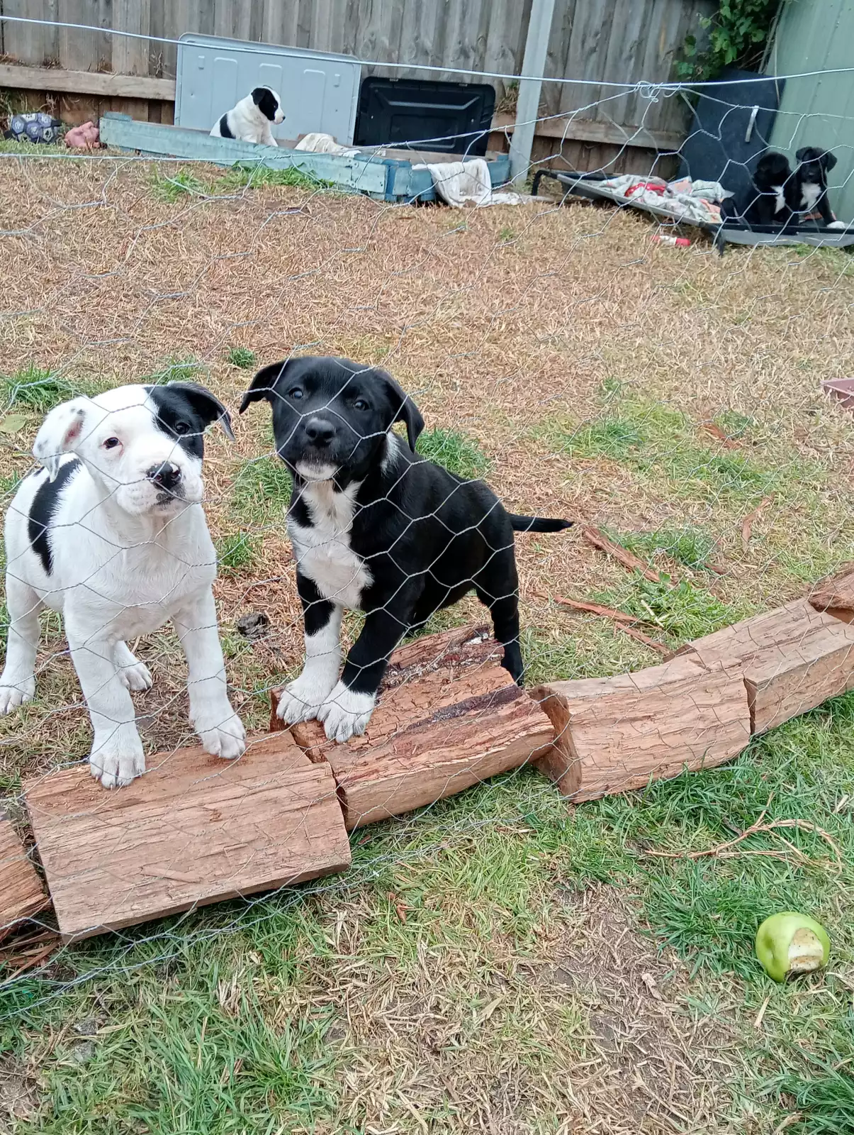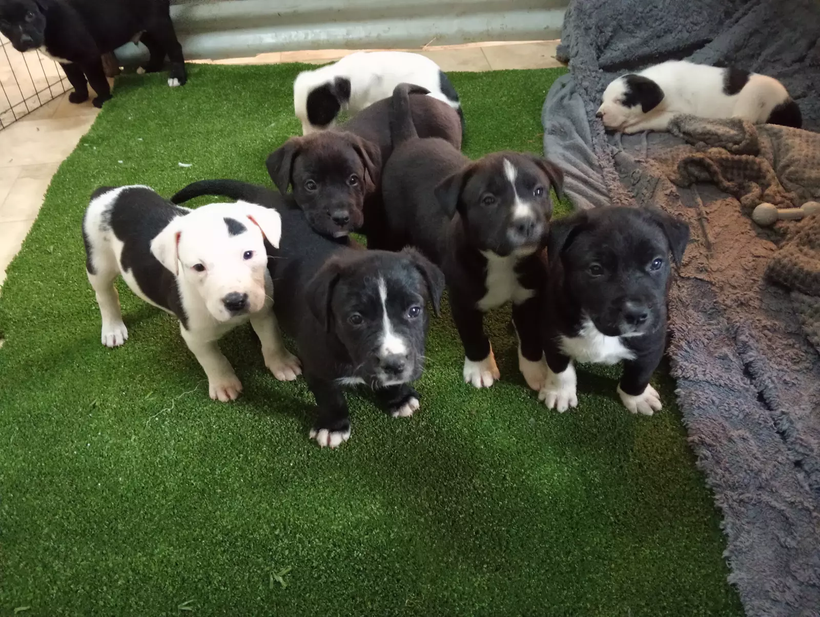9 MALE 6 week old Staffy X Border Collie Pups.