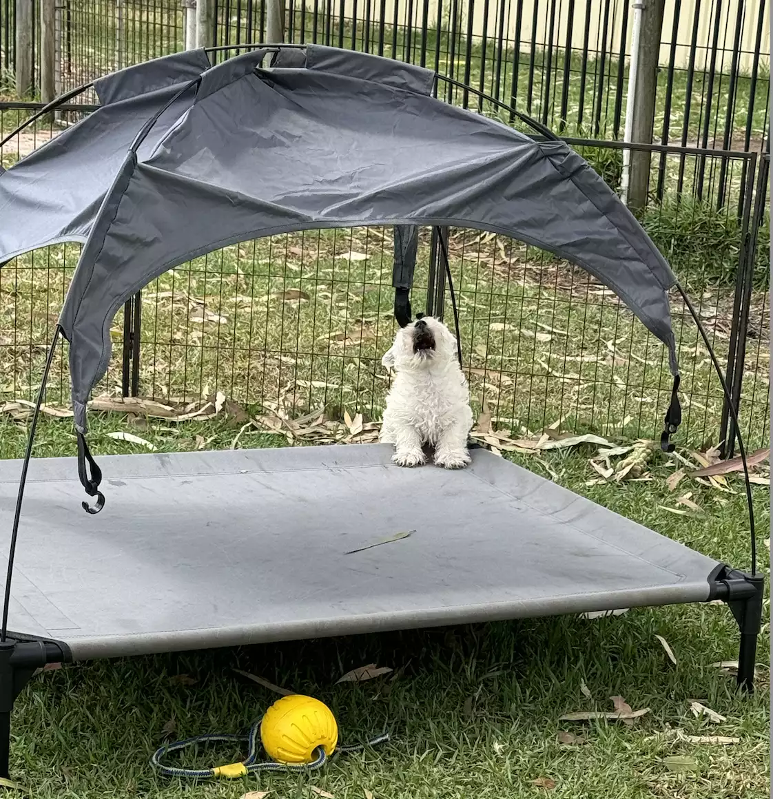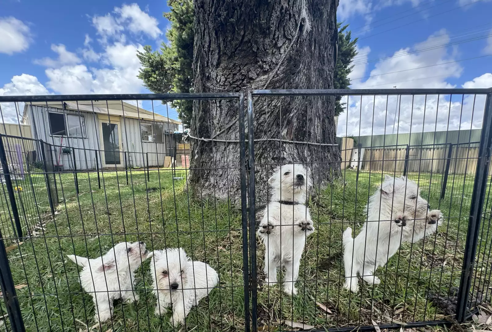 Dogs have access to: warm bedding, water at all times, ample space to exercise, natural light