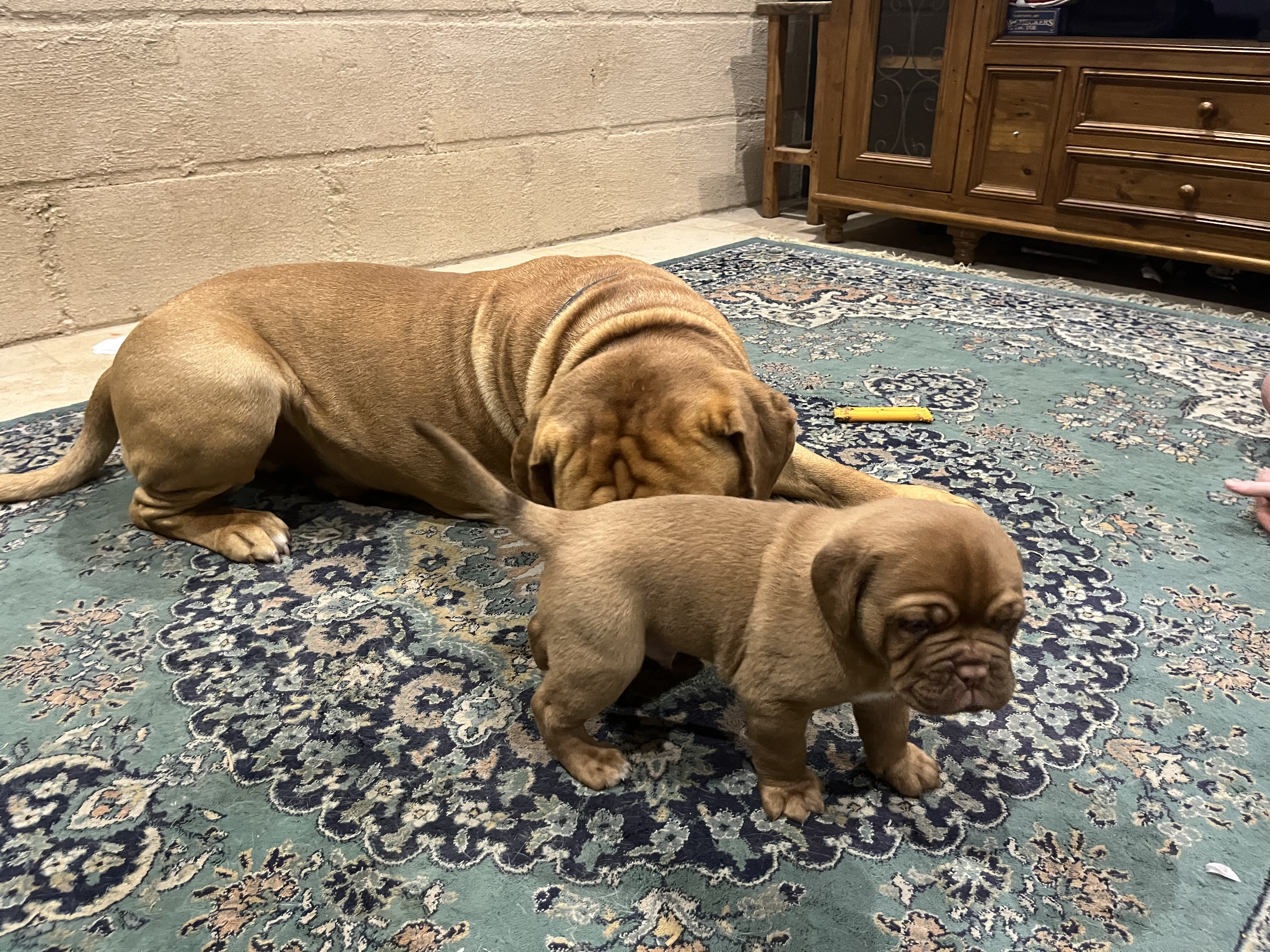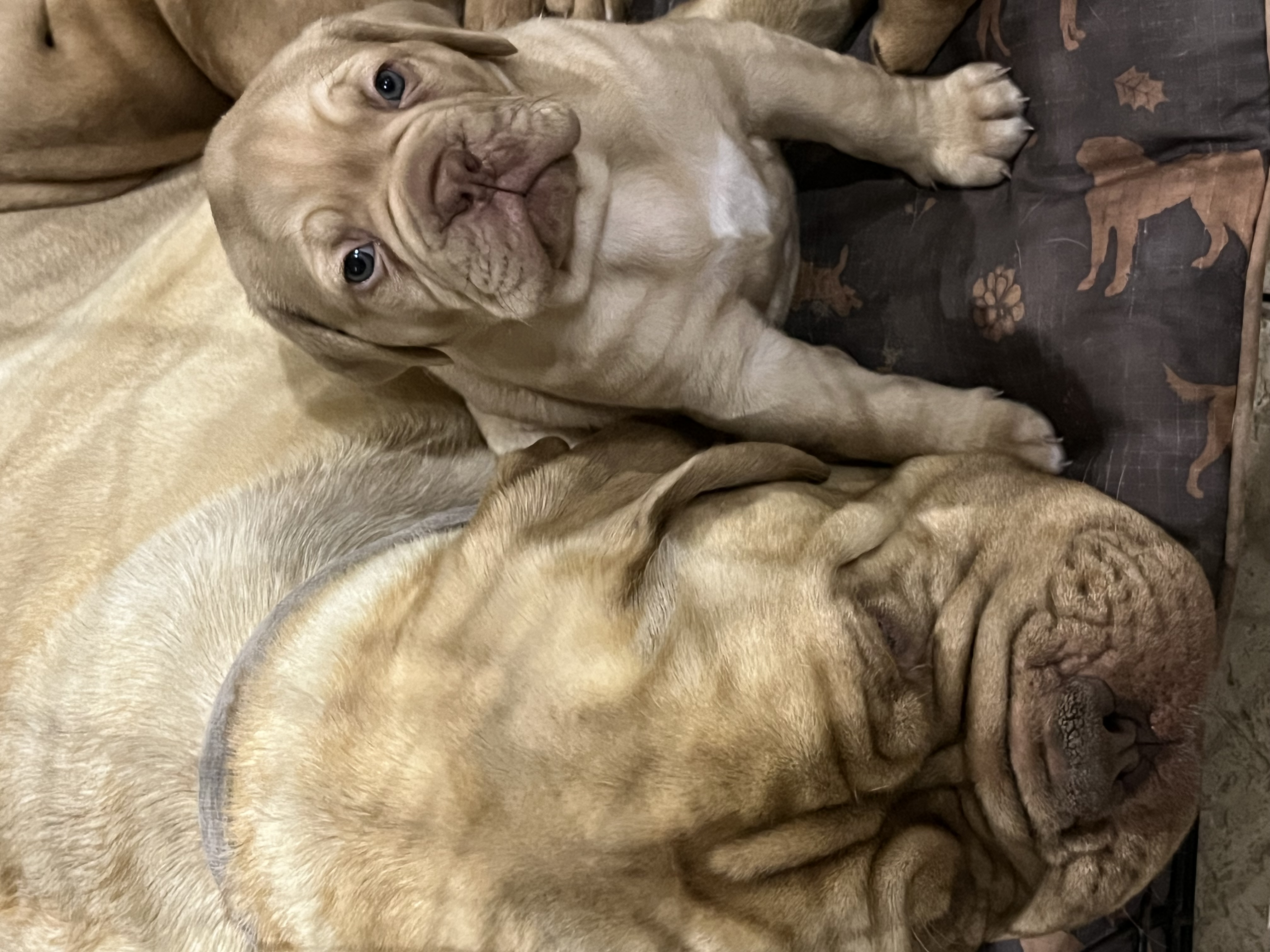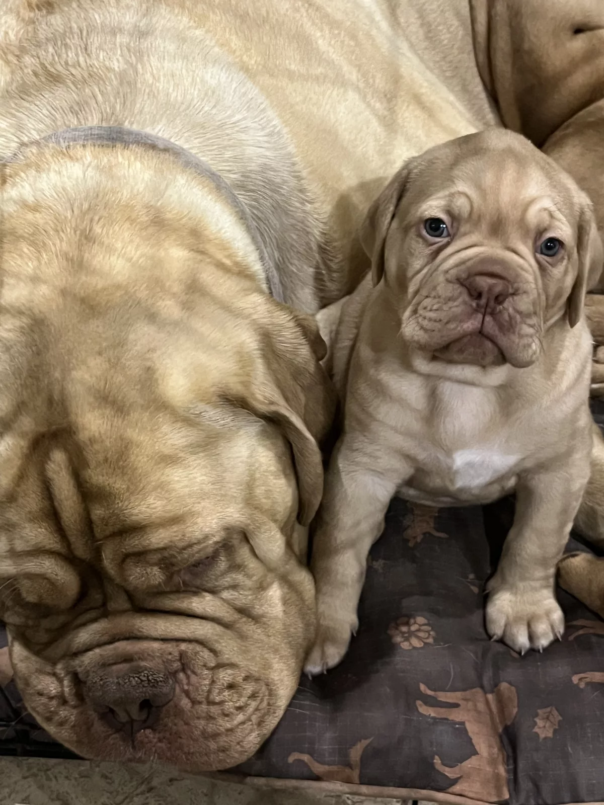Rare Isabella (desirable light fawn variant) and red fawn pure bred French Mastiff puppies.