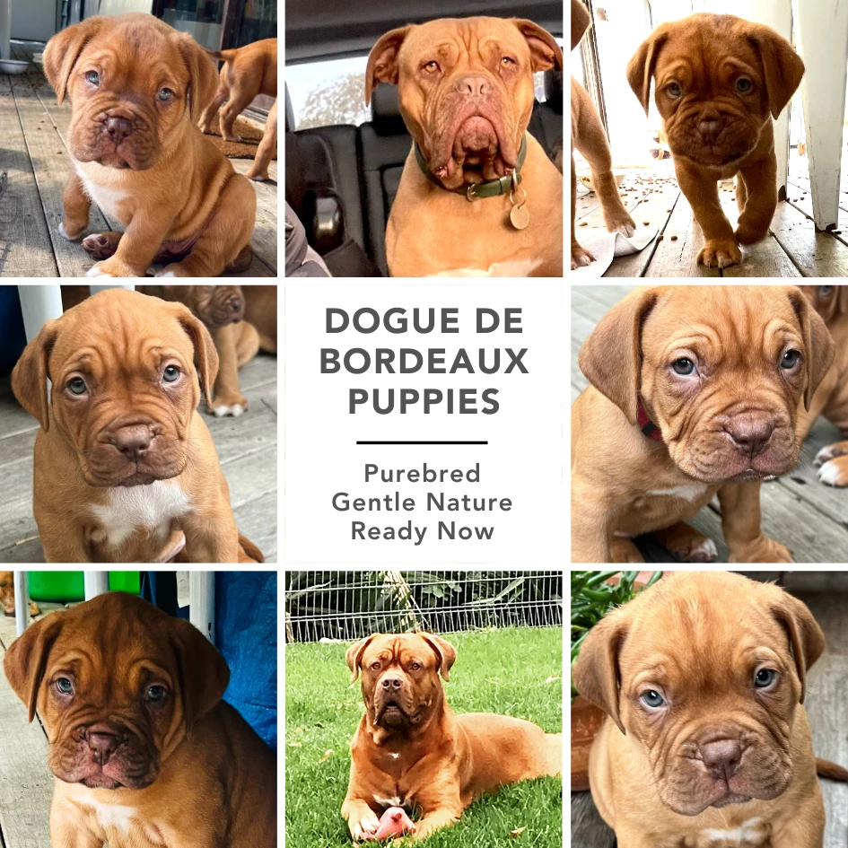 We have 3 males and 1 female remaining from this beautiful litter of purebred Dogue de Bordeaux puppies.