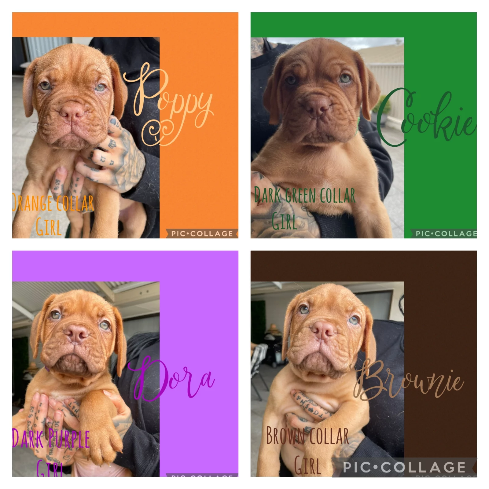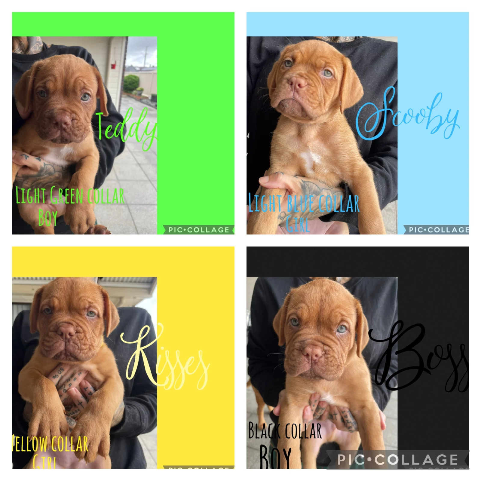 We have a beautiful litter of 8-week-old purebred Dogue de Bordeaux puppies ready for their forever homes.