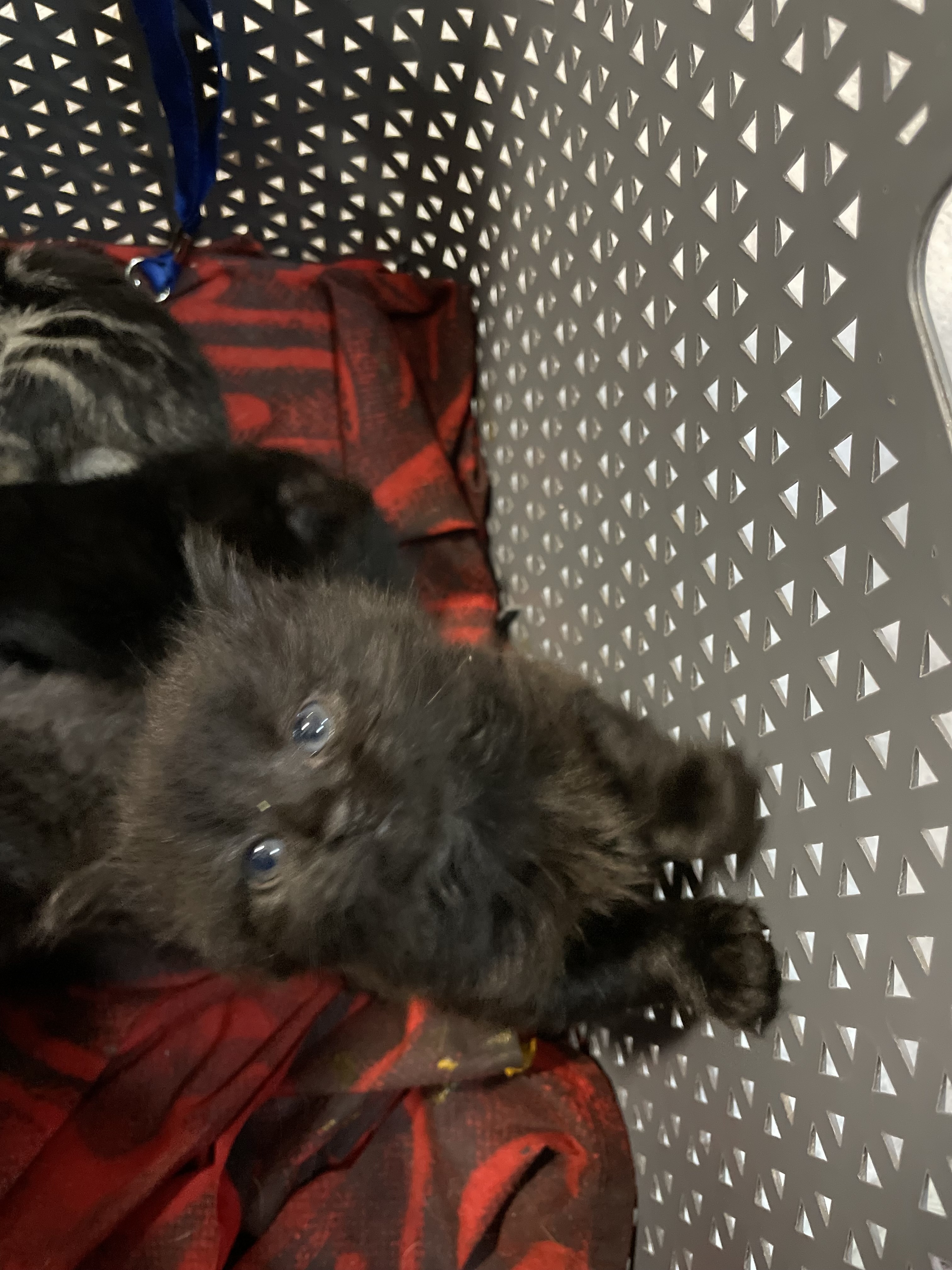 female - fluffy grey , tabby short hair , black short hair , black shaggy long hair , black with white blotches.