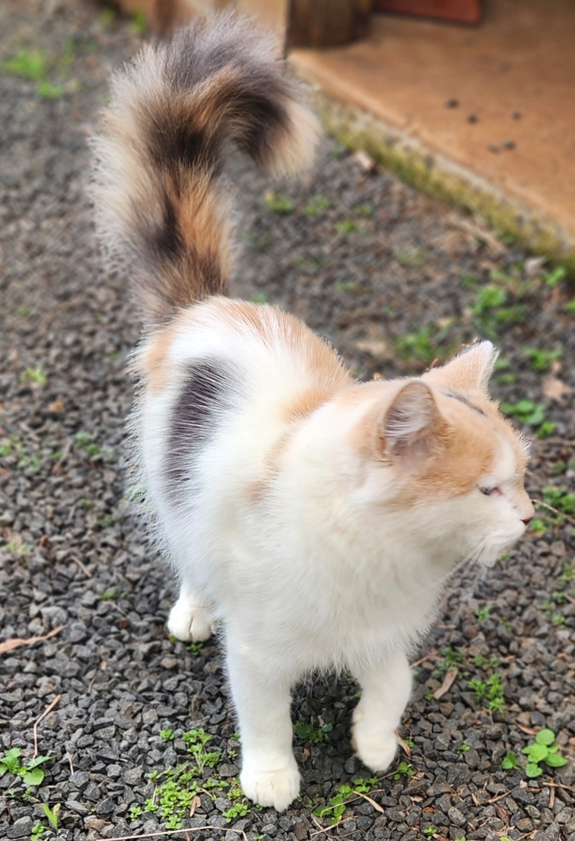 Willow is a very affectionate fluffy white, grey and ginger calico, who would quite happily be cuddled and sit on your lap all day. She will follow you around and try be involved in everything you are doing.