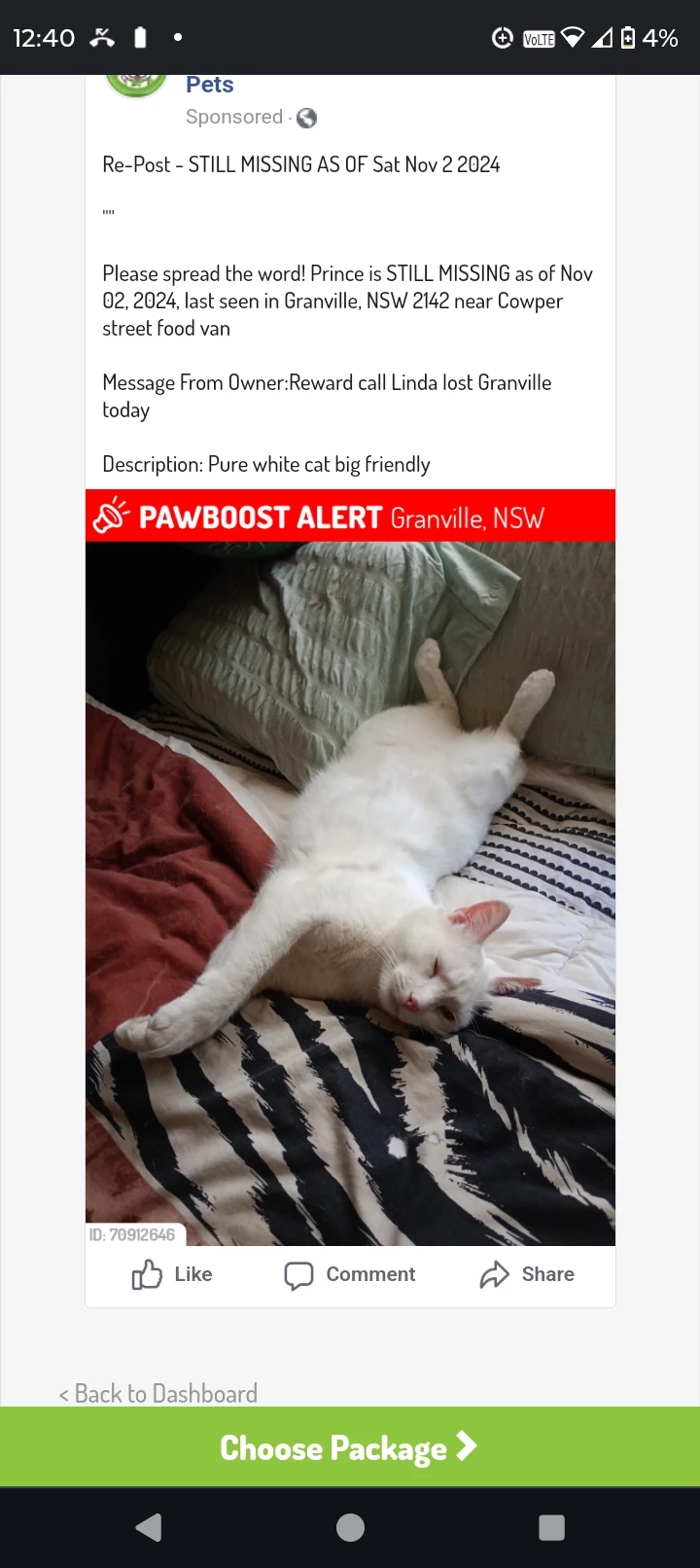 LOST PURE WHITE MALE CAT NAMED PRINCE IN GOOD STREET GRANVILLE Monday 28/10/24.