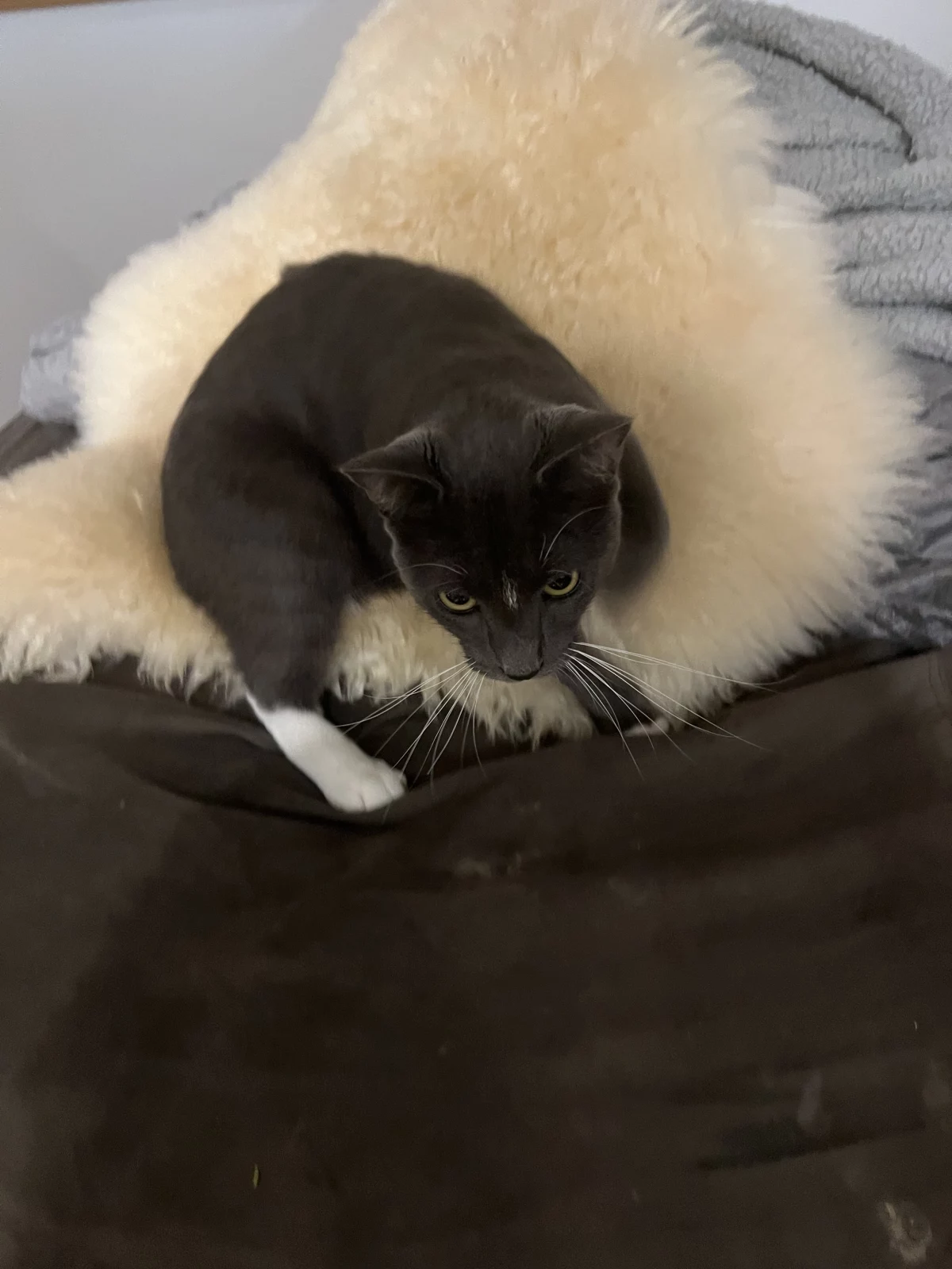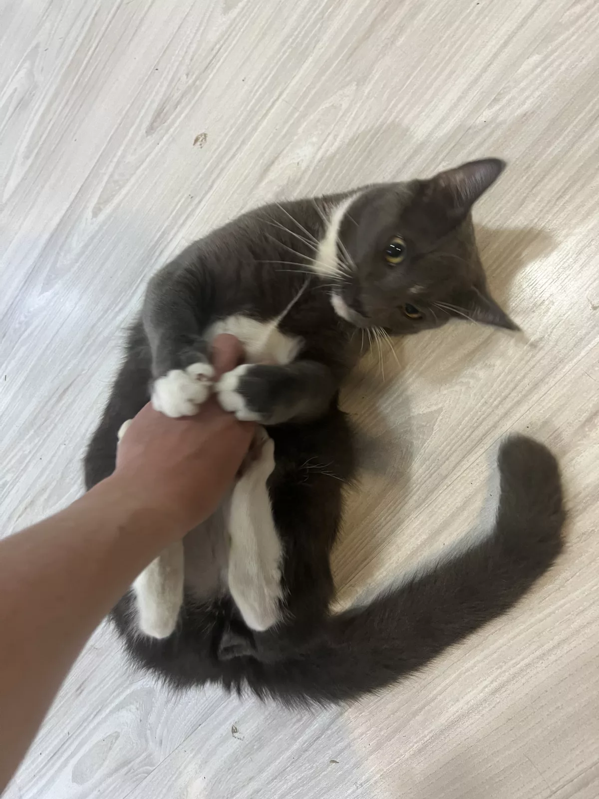 Loving 1 year old grey kitten. Looking for a new home as I can no longer keep them.
