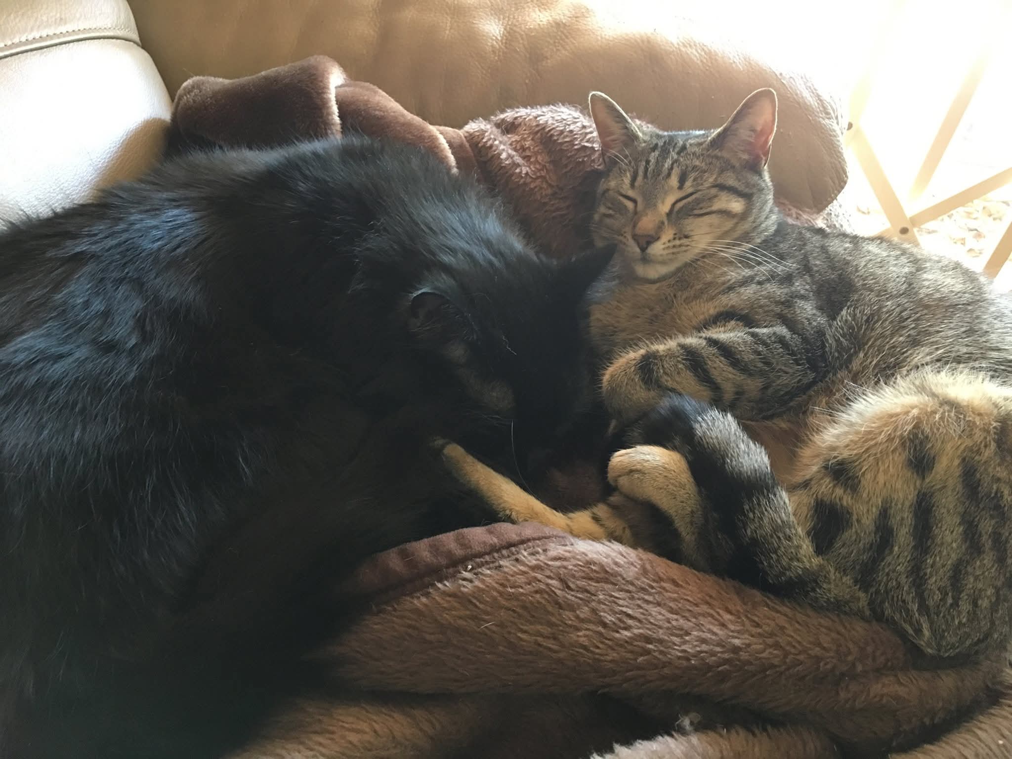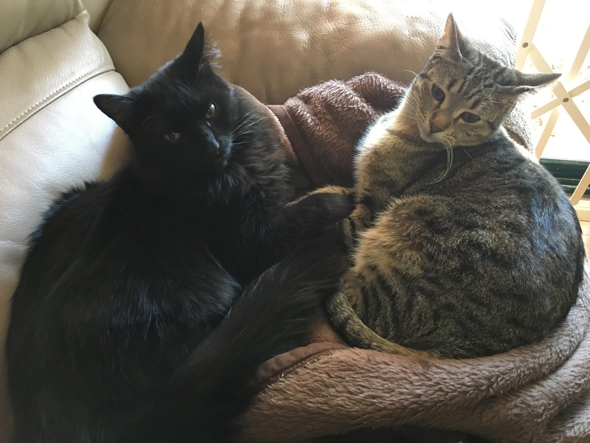 I have 2 desexed indoor cats for a new home. The black medium haired cat is male and is about 10 years old. The mixed coloured short haired cat is female and is about 8 years old. They are both very affectionate cats, almost like lap dogs that like lots of pats, hugs, and kisses. The male cat is very confident, the female one will take about a week to get used to new owners. They have been together for about 8 years now and are good friends. Must take both, not to be separated.