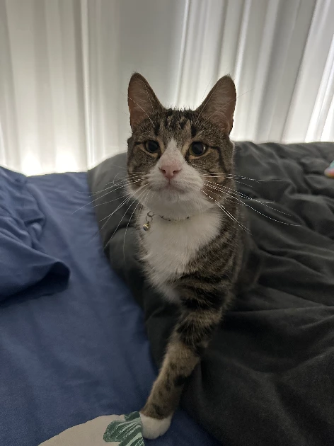 Breed/Colour: Domestic short hair, tabby and white