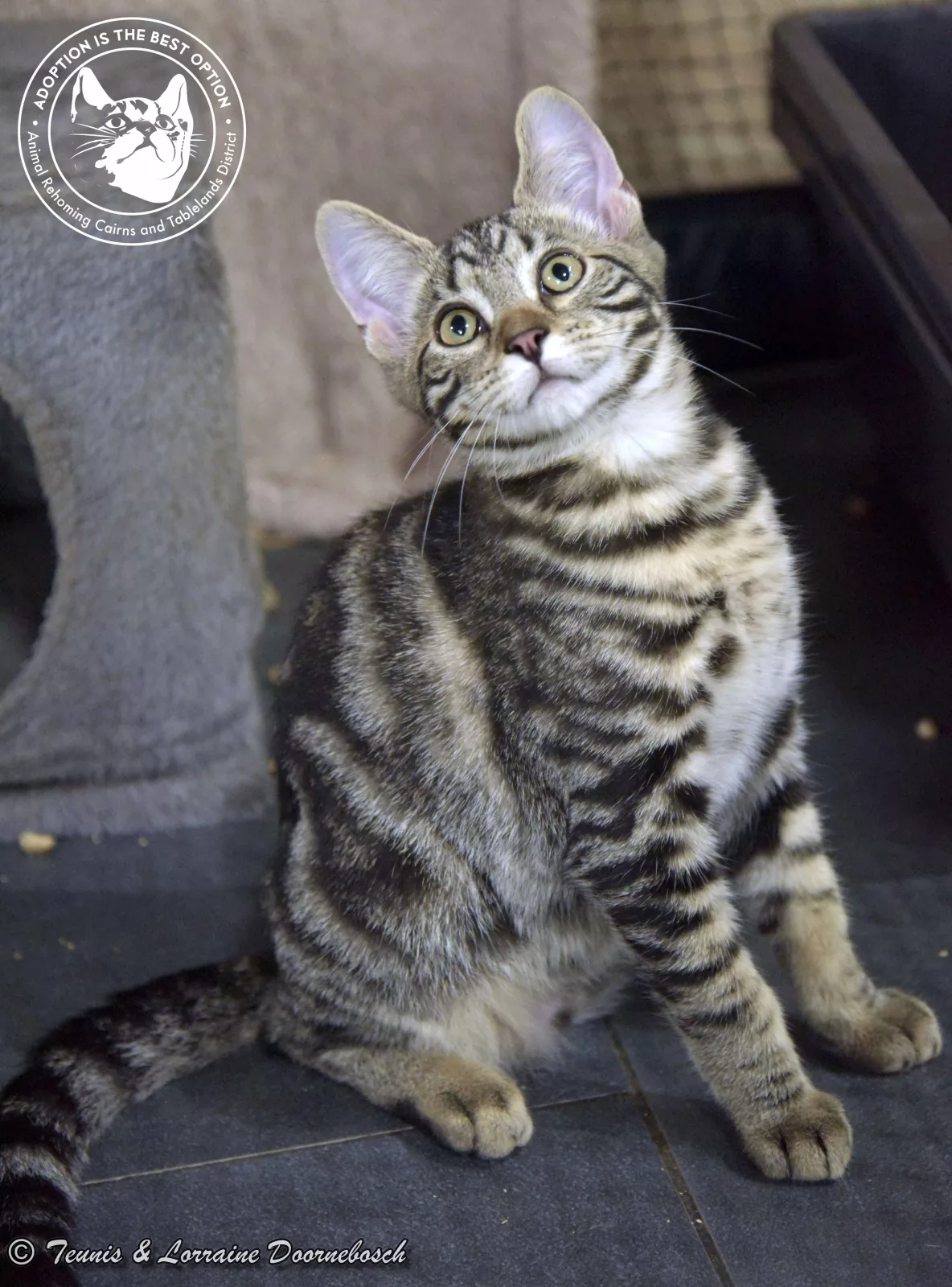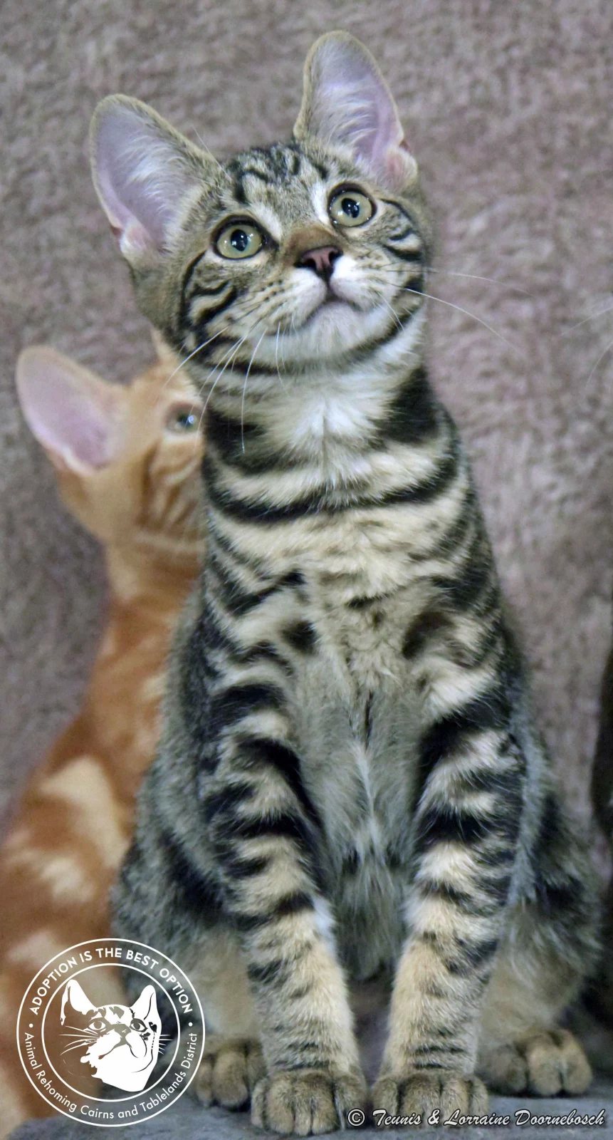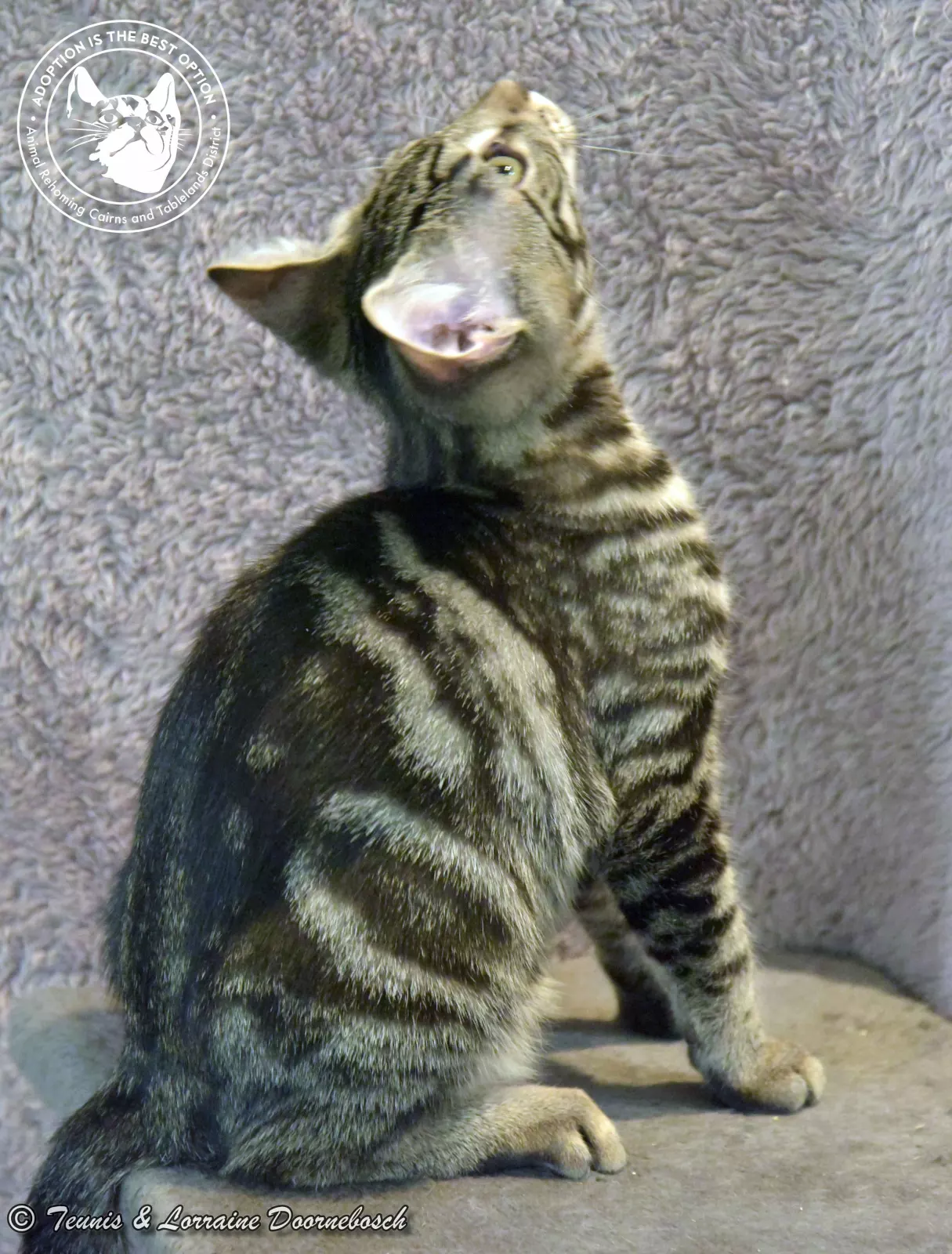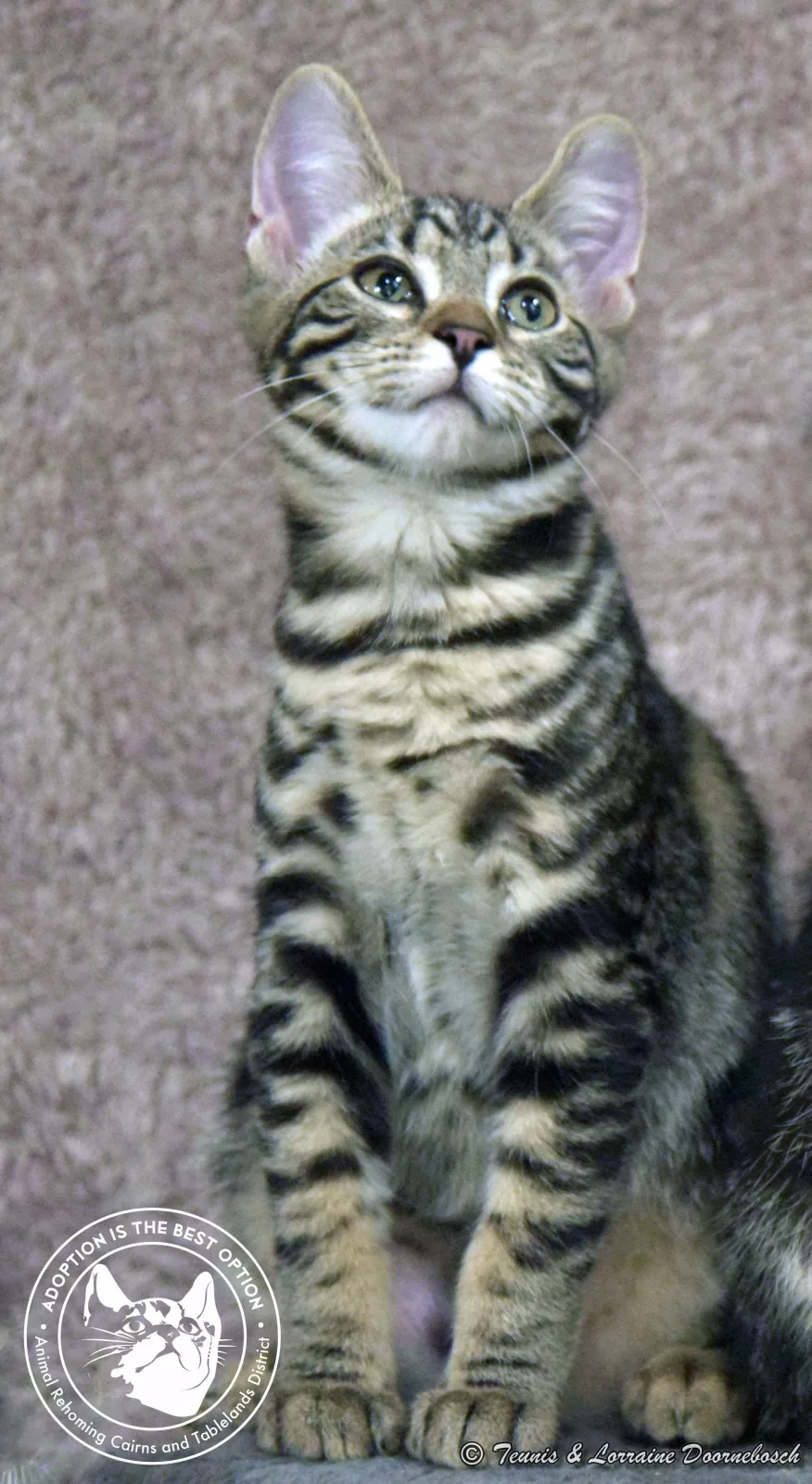 Jasper is one of the 11 kittens named for precious stones. He came to us from Mt Garnet with 13 other kittens. All of the kittens were quite shy and feisty but, with good food and loving care, they're starting to prove that their shyness was environmental and not in their nature. Jasper's markings are stunning. He's a gorgeous classic tabby and of all the kittens, he has been the first one to start purring and enjoying petting. He's quite a confident kitty and will quickly come out of his shell once he has his own home and humans to care for him.