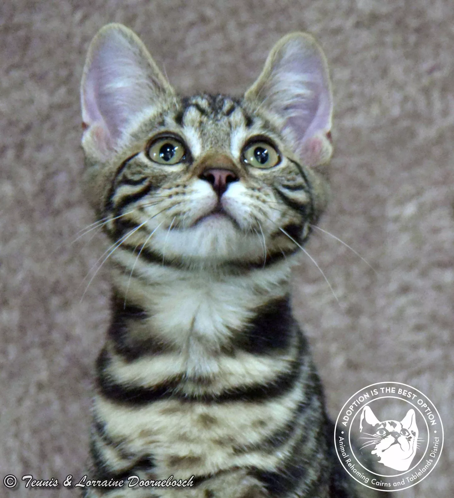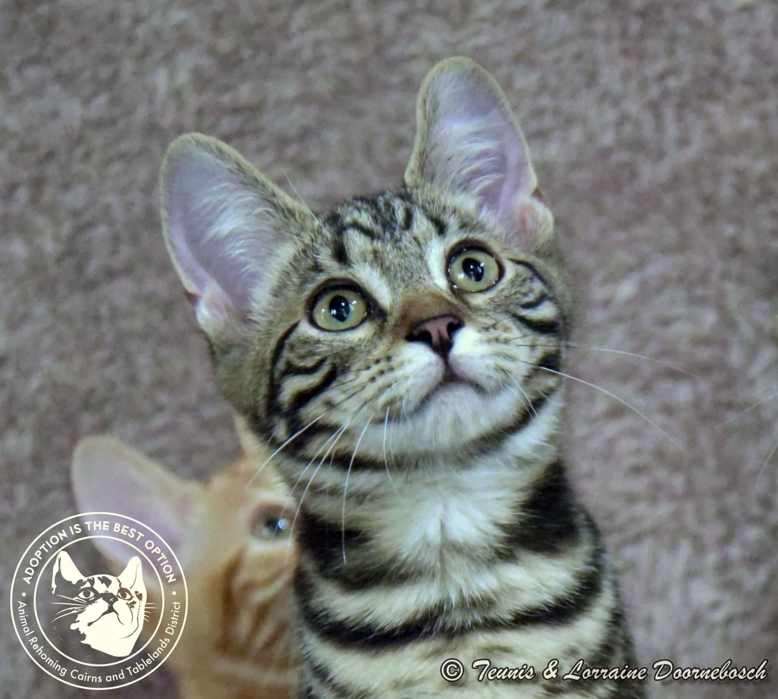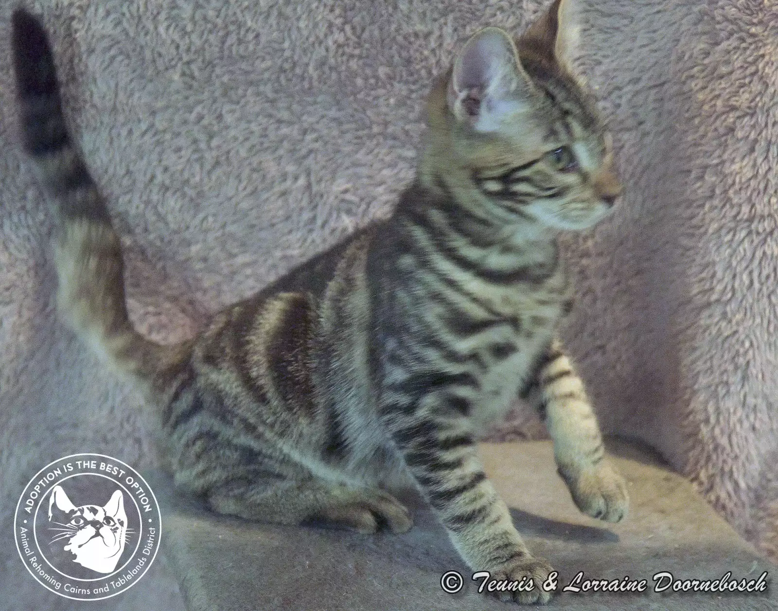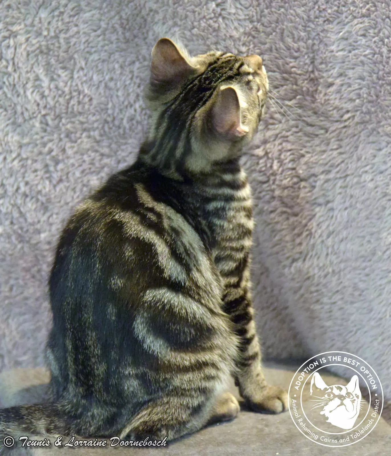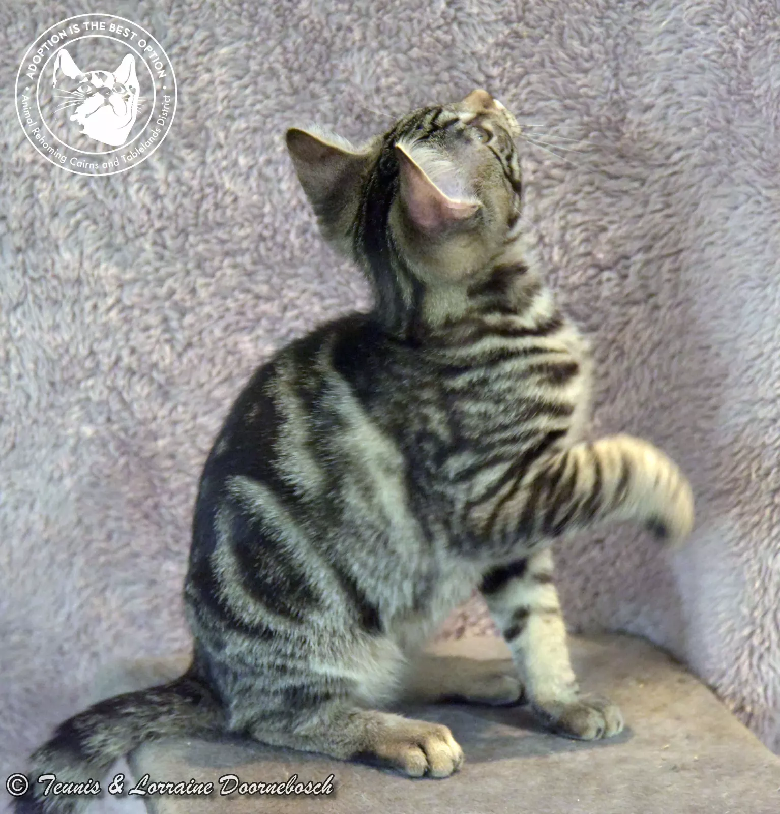 Jasper is one of the 11 kittens named for precious stones. He came to us from Mt Garnet with 13 other kittens. All of the kittens were quite shy and feisty but, with good food and loving care, they're starting to prove that their shyness was environmental and not in their nature. Jasper's markings are stunning. He's a gorgeous classic tabby and of all the kittens, he has been the first one to start purring and enjoying petting. He's quite a confident kitty and will quickly come out of his shell once he has his own home and humans to care for him.