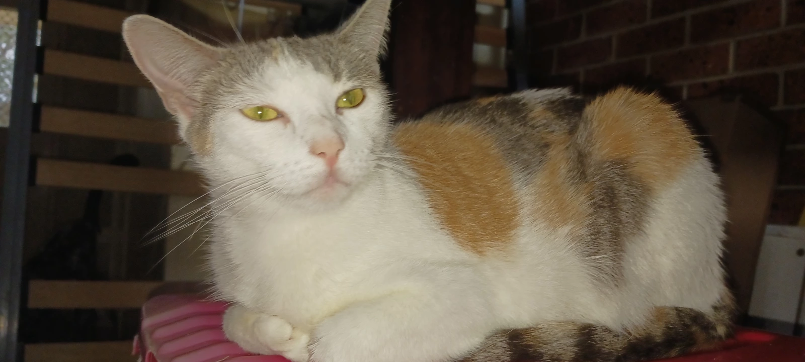 She is a beautifully coloured girl and is desexed and microchipped.