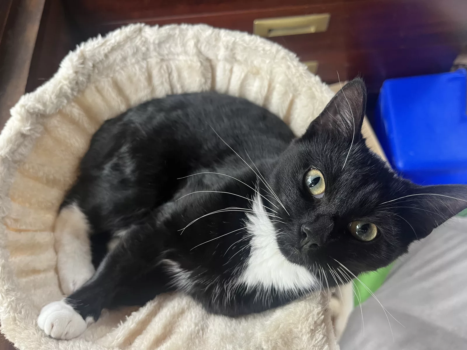 He is extremely playful and absolutely loves sleeping right alongside you! Tazzie will come with his current food and litter tray, ensuring a smooth transition. This sweet boy needs a loving home to share his life with!