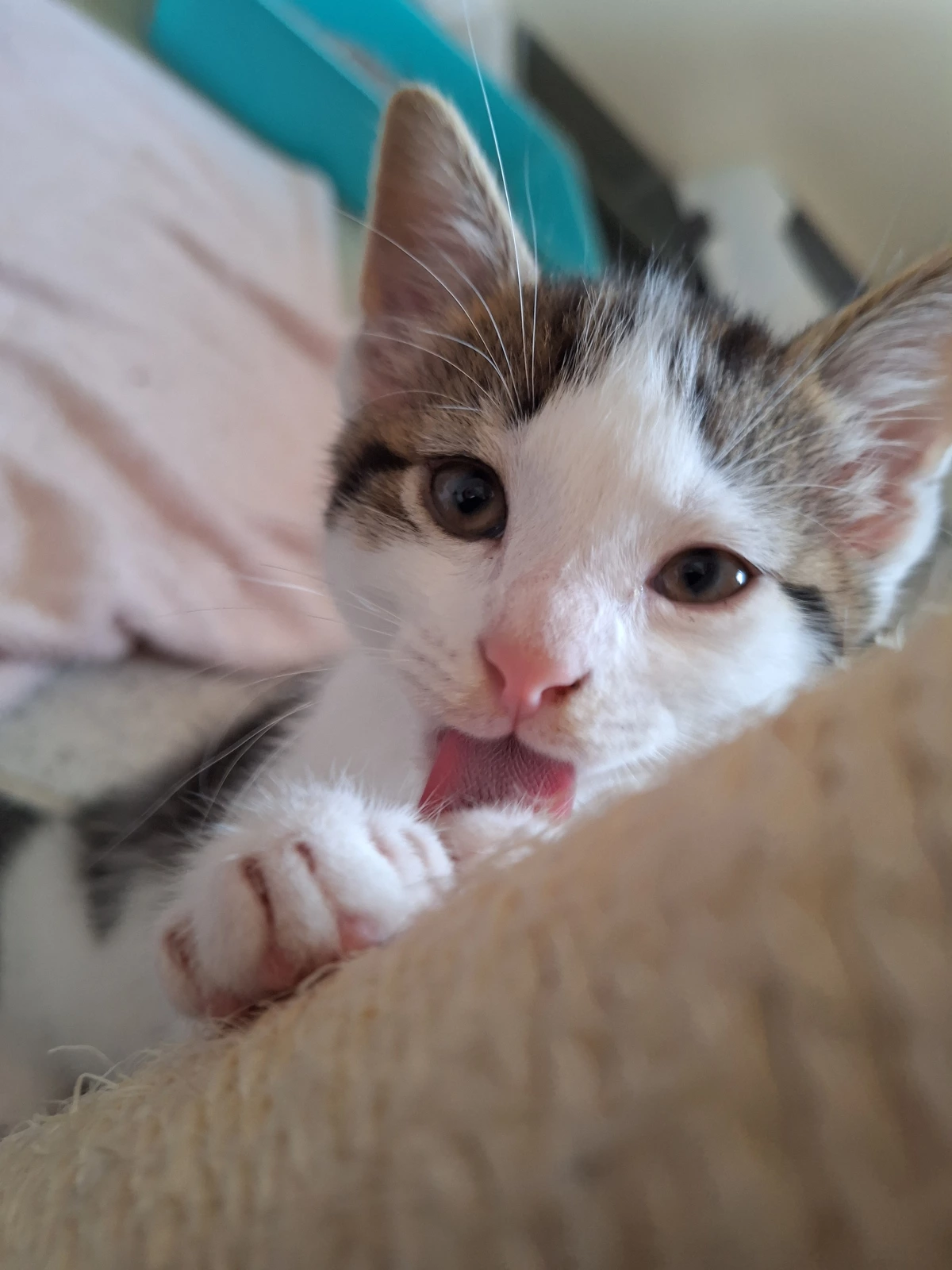 He loves playing with his siblings, but will also cuddle up with his humans from time to time.