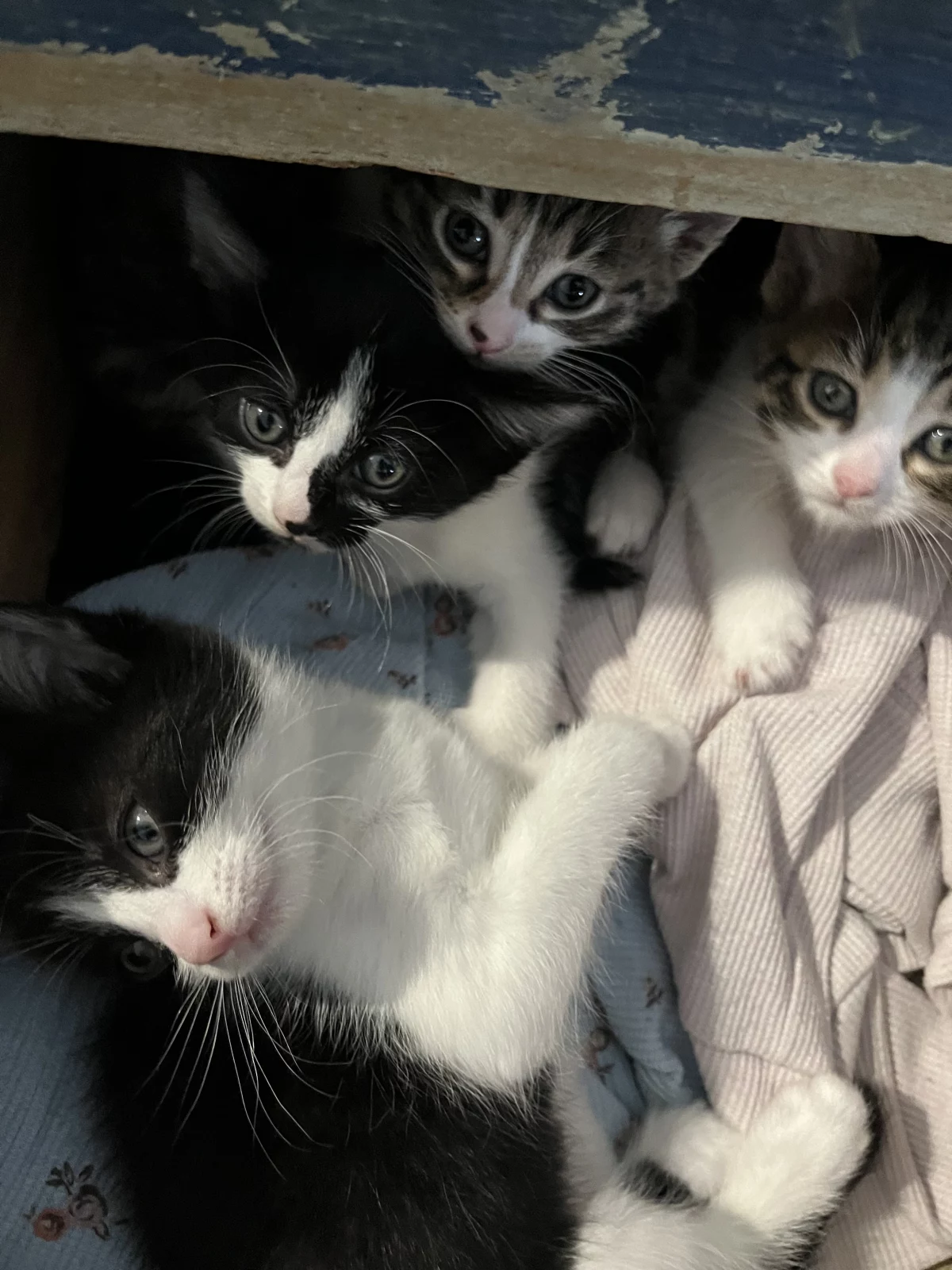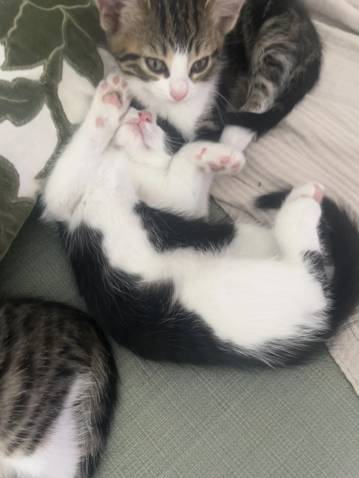 The available kittens are: two charming Black and White kittens, and one striking Tabby.