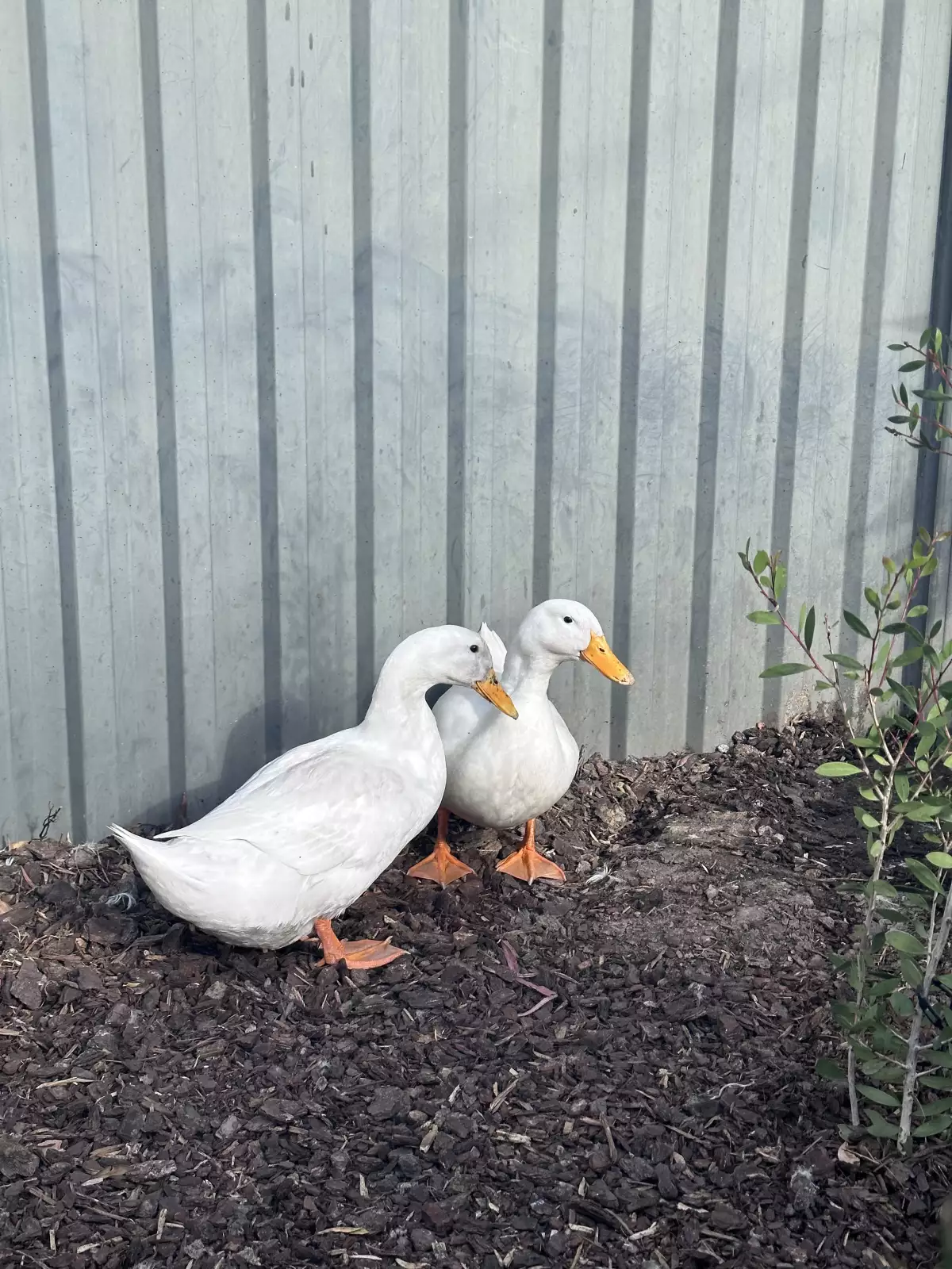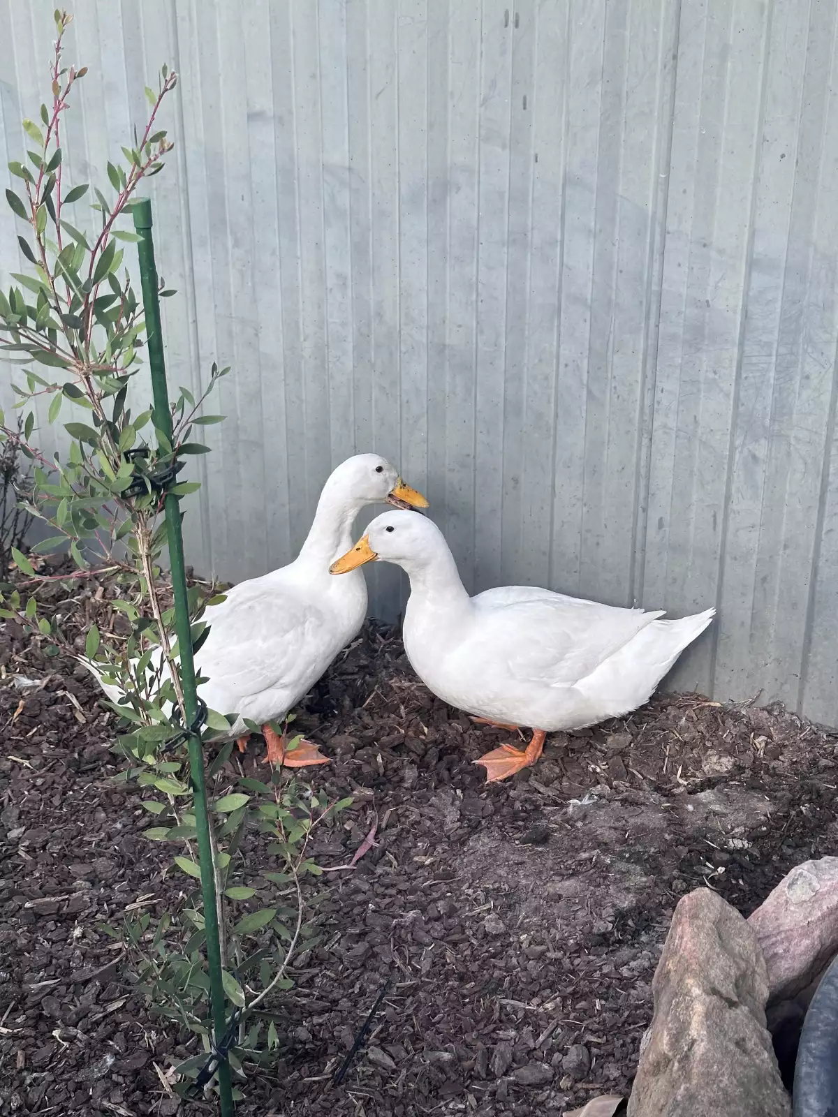 Pekin Ducks Seeking a good home. My dad’s pets for over a year but he can’t have them anymore due to re-doing our garden.