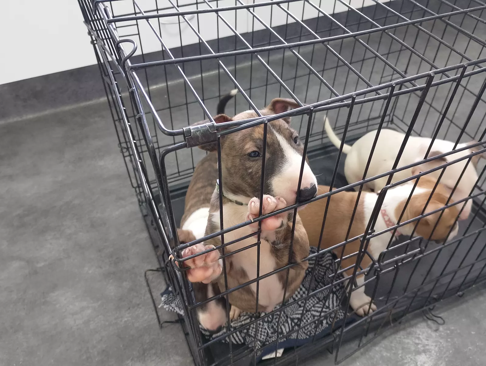Dogs have access to: warm bedding, water at all times, ample space to exercise, natural light