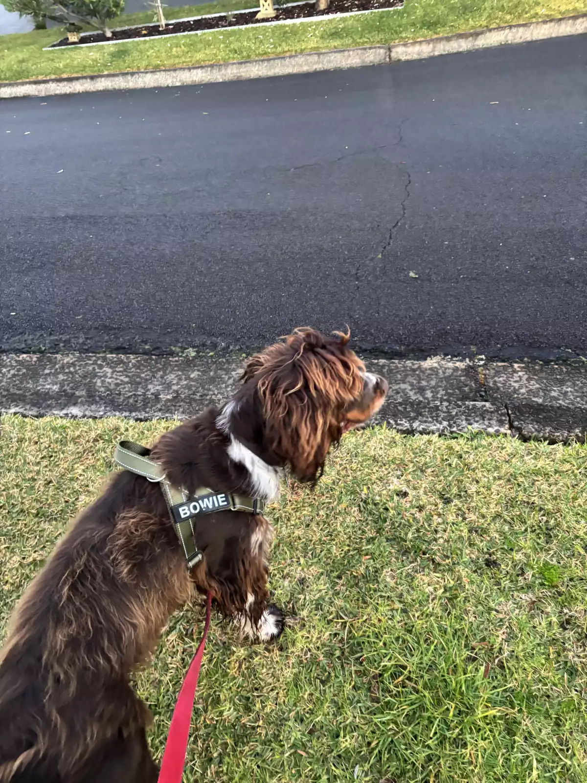 Bowie is an active, loving dog from a family with young children. He loves lots of activity, walks, playtime, toys and his food! He’s super social and like most Springers, curious and enthusiastic about new places and people.