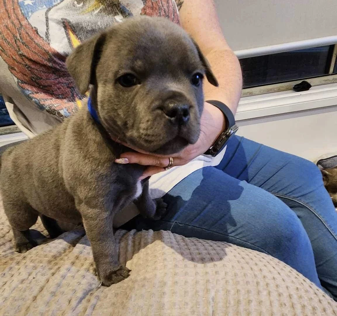 4x Male Purebred English Staffordshire Bull Terrier Puppies ready for their forever homes. These gorgeous boys have been vaccinated, wormed, microchipped, and DNA cleared through parentage. They are well socialised with other dogs, children, and household pets, making them ideal family companions.