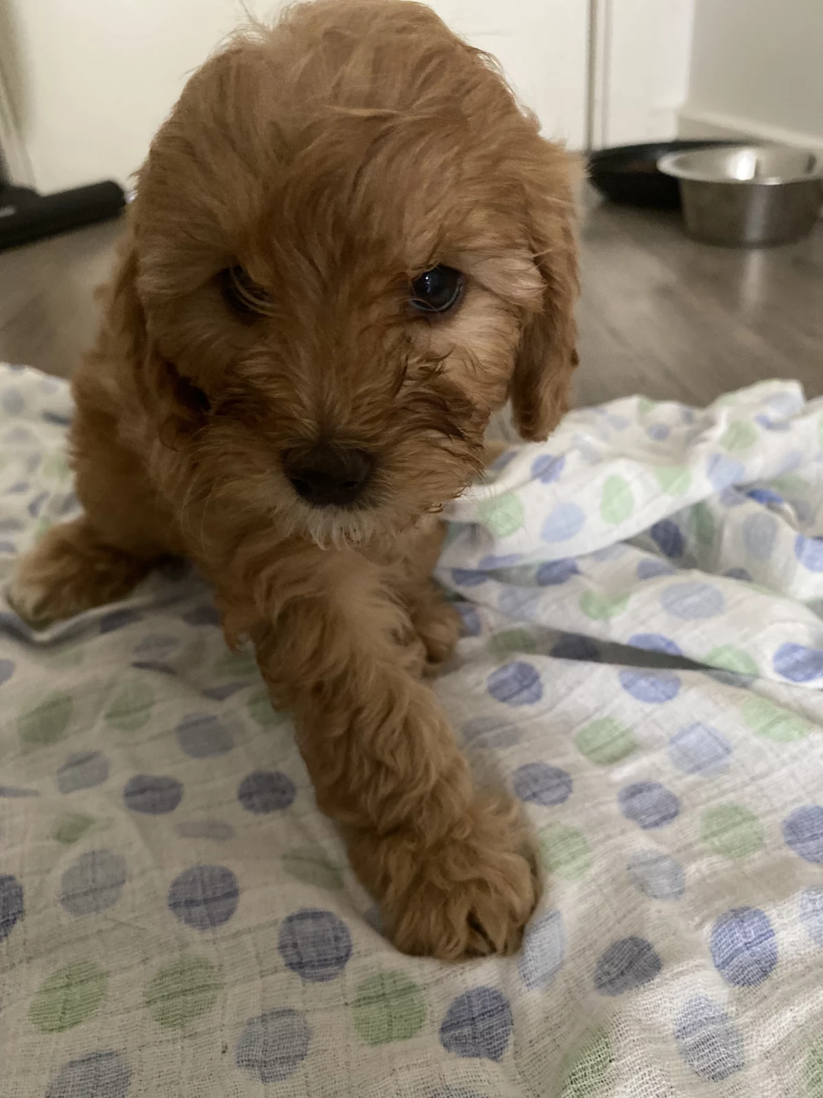 The Dame is a lovely First generation Cavoodle and the Sire is a pedigree red toy poodle, DNA clear with blood lines from the USA.