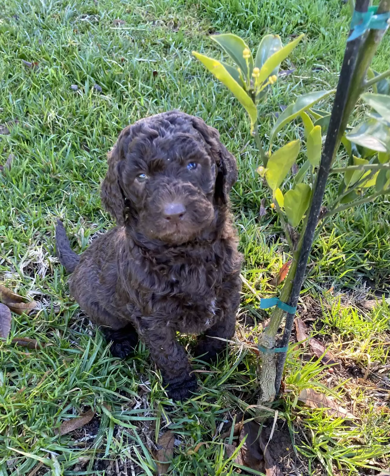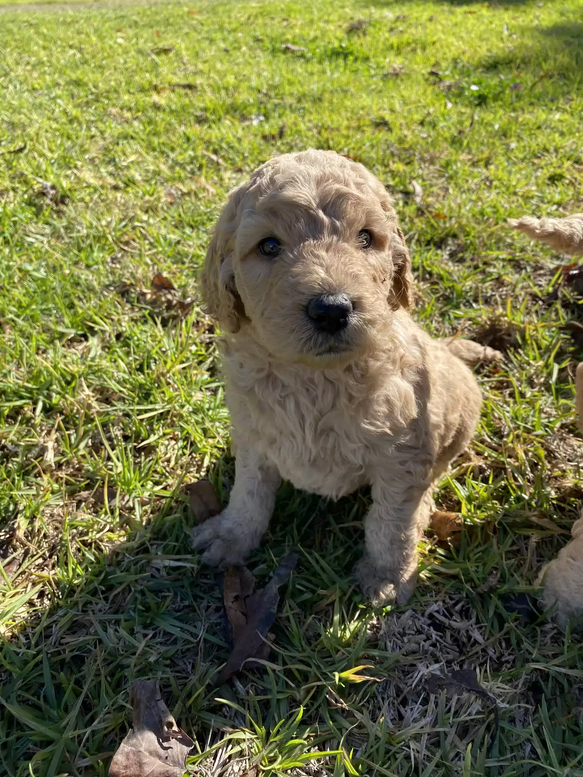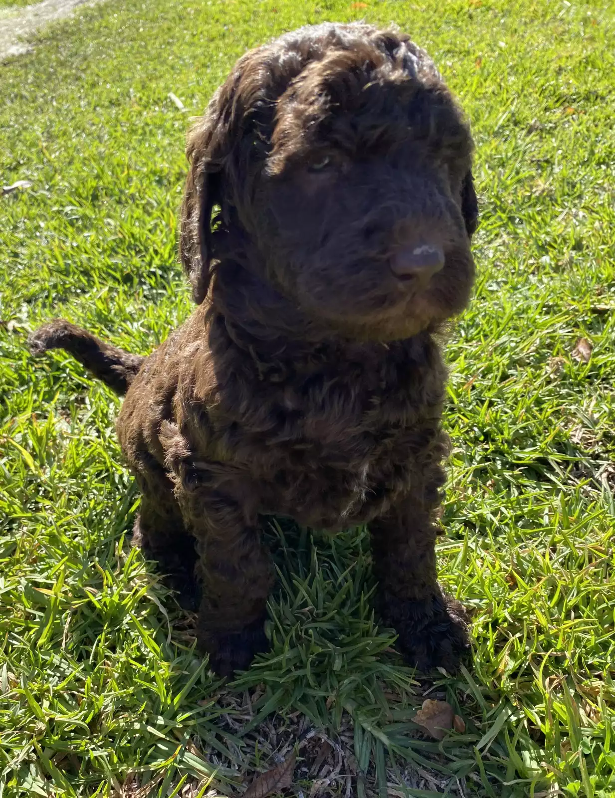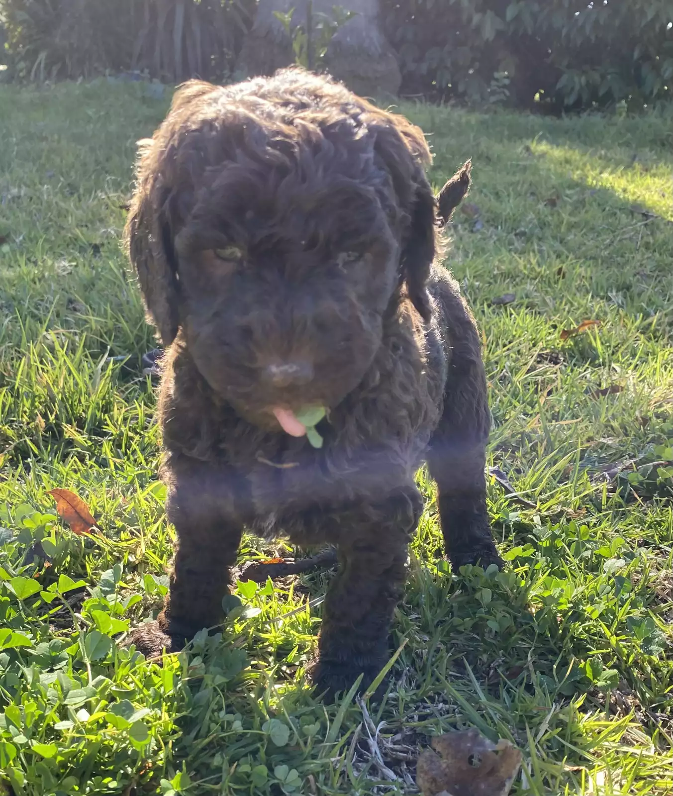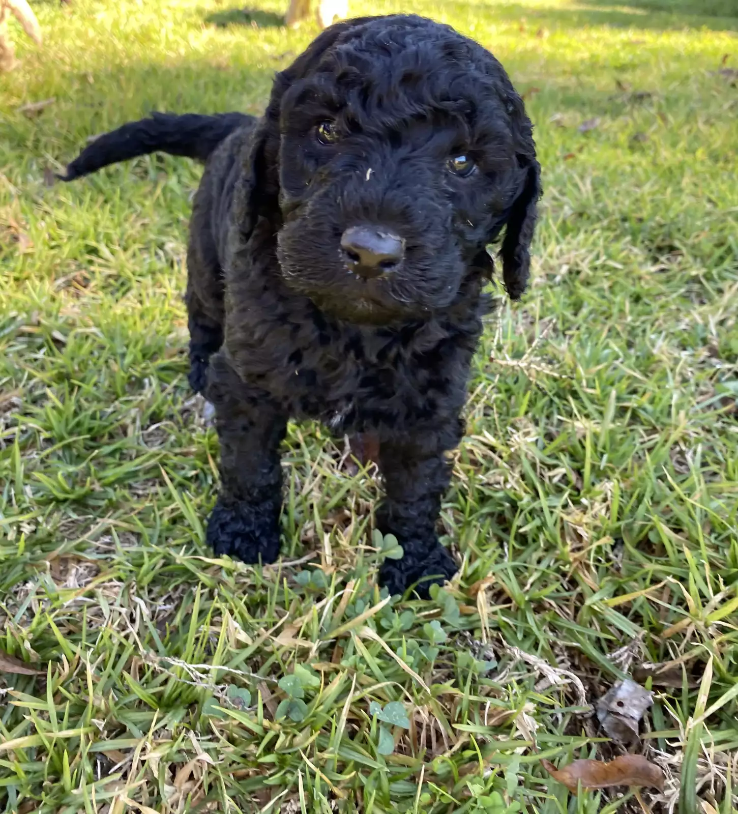 F2B Oodle / Groodle puppies from a F2 Black Medium Double Doodle (Groodle x Labradoodle) ,crossed to a Apricot Pure breed Standard Poodle. This highly sought after generation of the breed inherit a curly or wavy coat that is usually very low or non-shedding, which will make them excellent family pets for families with mild-moderate allergies to pet dander or simply hate cleaning up dog hair. The F2B Oodles are from our family dogs Ollie and Nova born on the 18-5-23. Both parents are a pleasure to have around and have DNA Profiles.