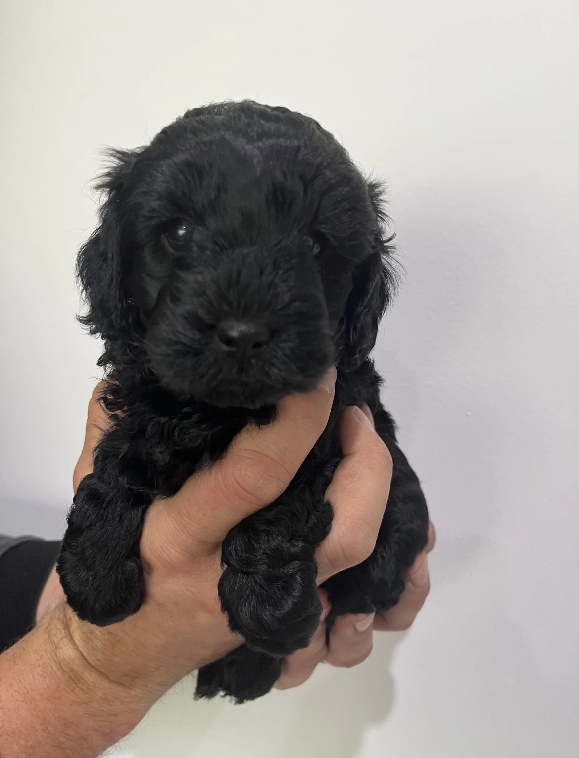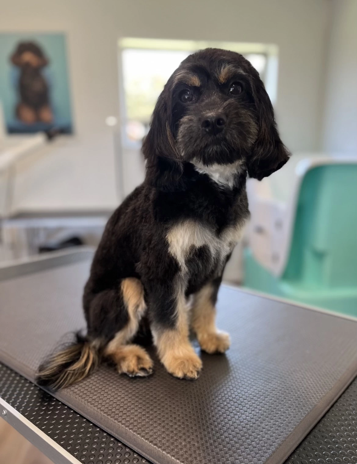 Mum is a first generation Cavoodle, black & tan colouring, weighing 5.1kg.