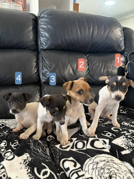 We have four beautiful Miniature Fox Terrier puppies (aka Tenterfield Terriers) looking for loving homes.