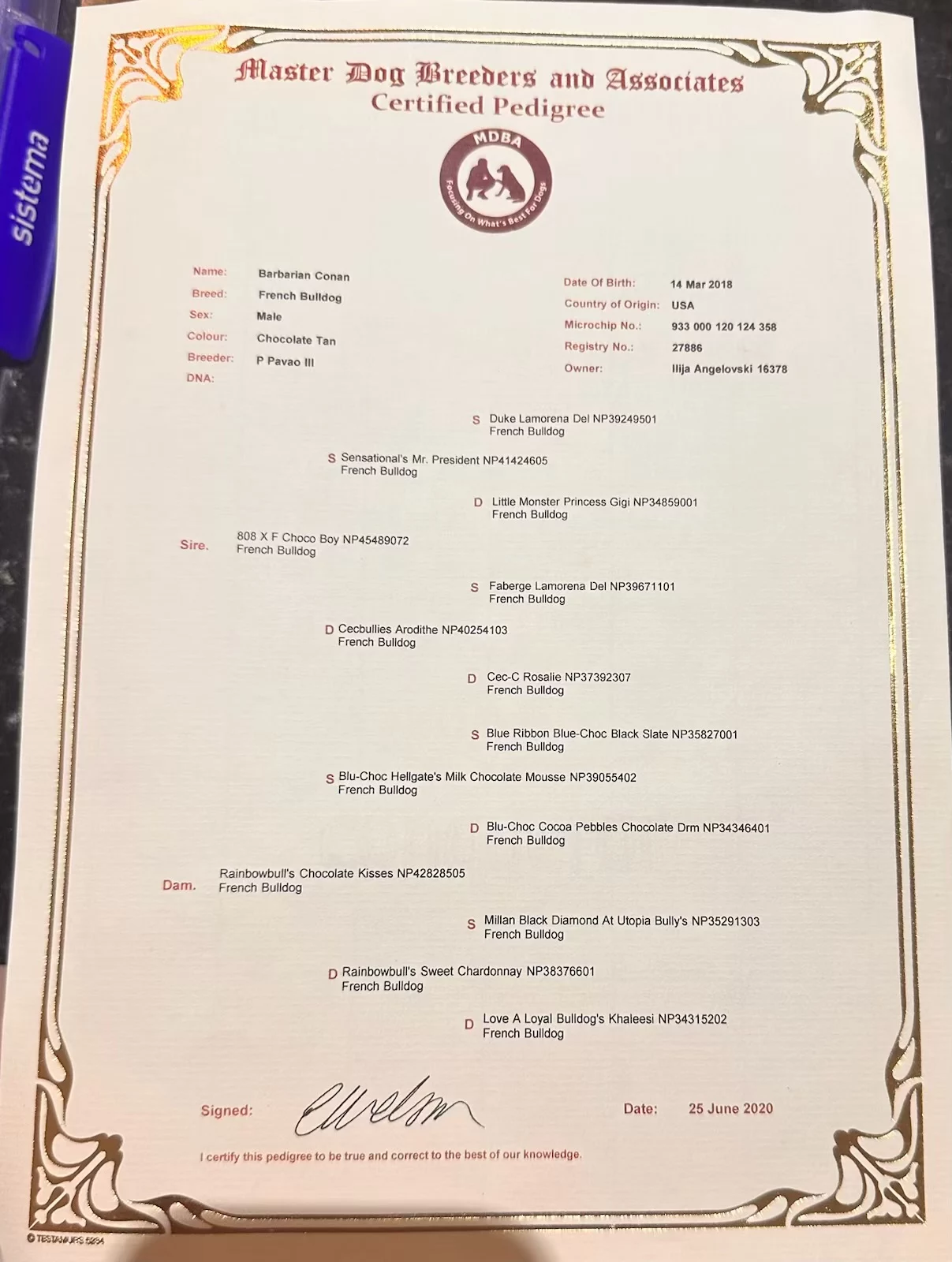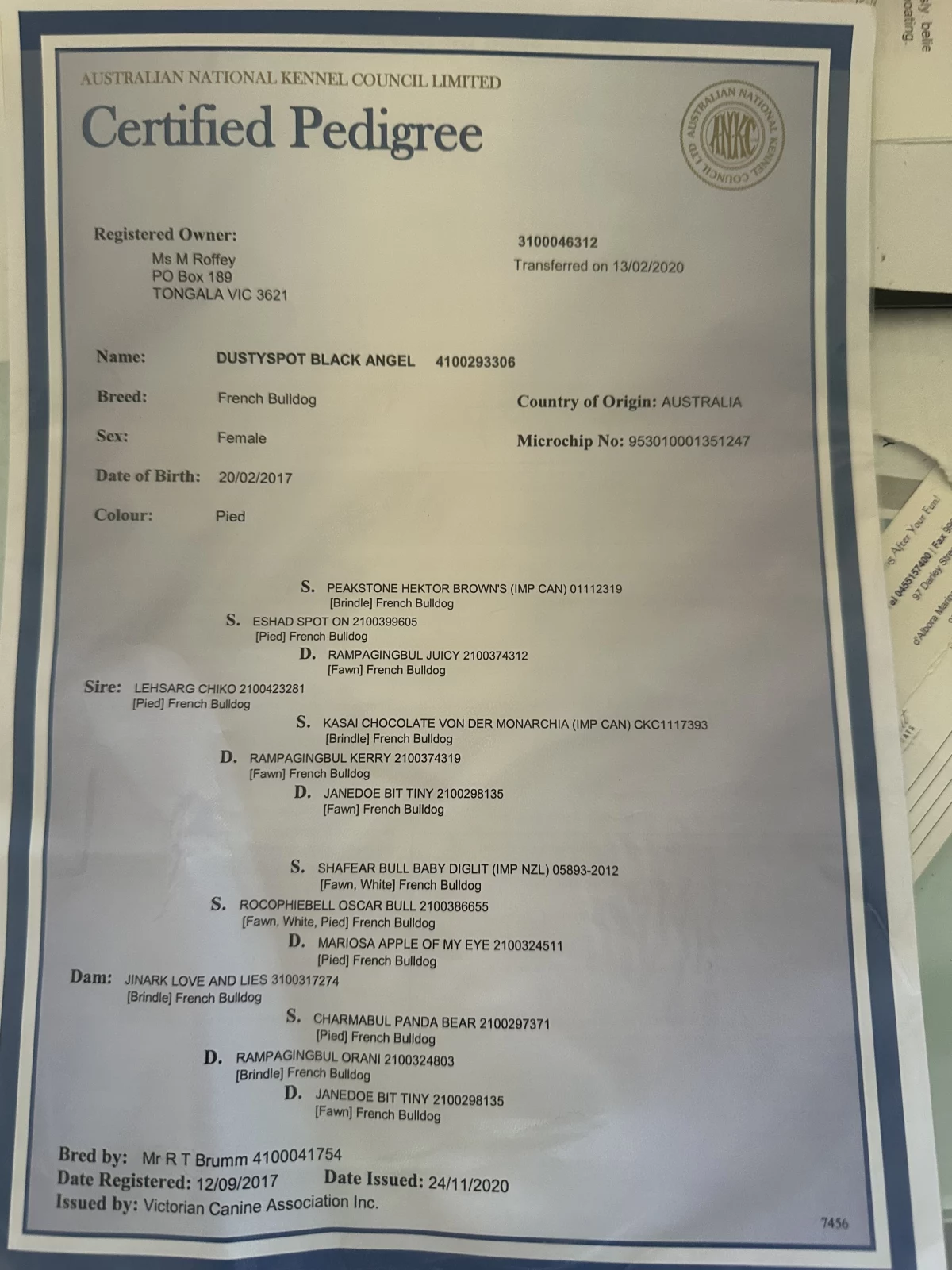 Both his parents are pedigrees. Mum is available to meet and dad is an import from America.