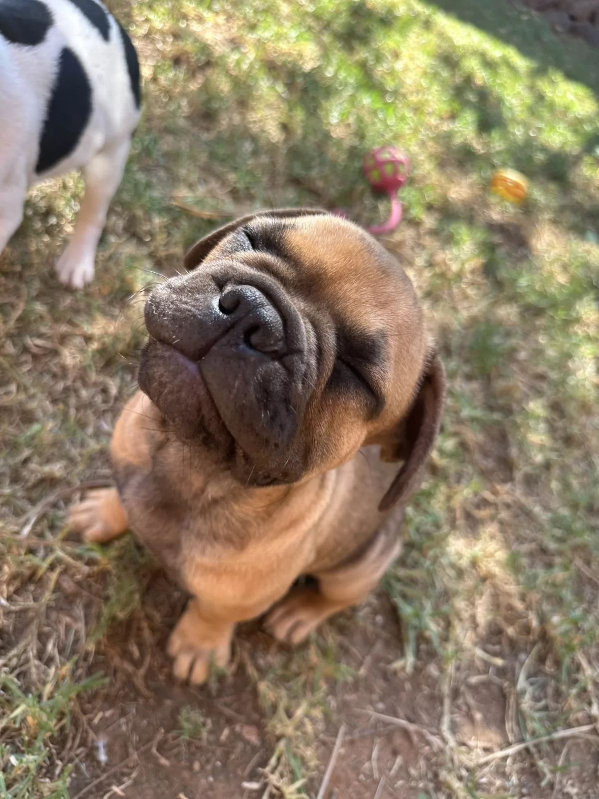 Tank has made friend with a boerboel who he loves to bits. And is working on a friendship with our cat. Tank thinks the cat is a dog and the cat thinks he is a dog, so sometimes they both need to be reminded the cat isn’t a dog 🤣. Tank is more than capable of being an inside/outside dog. We always make sure he has plenty of toys to play with. He especially loves his squeaky toys.
