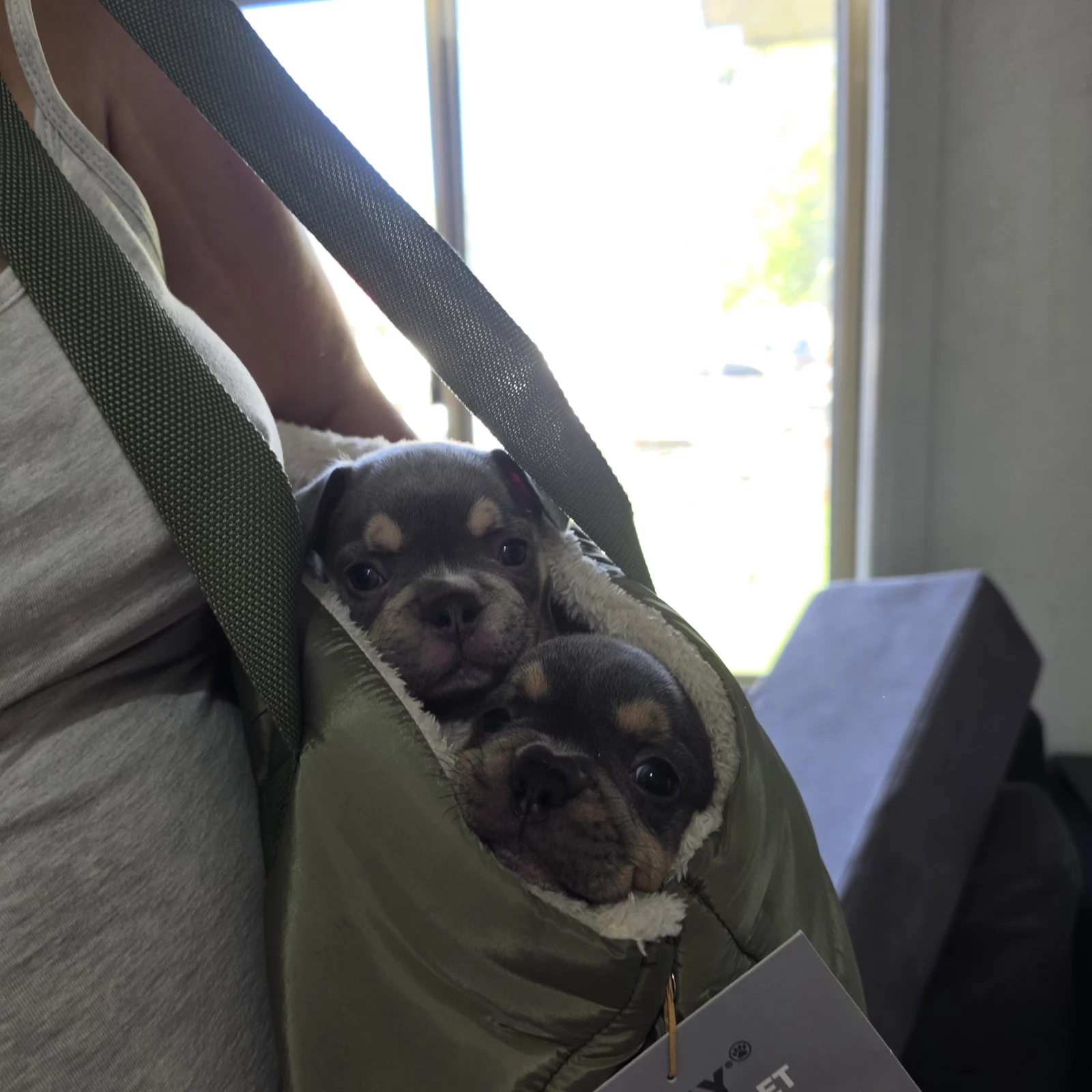 She is blue and tan,