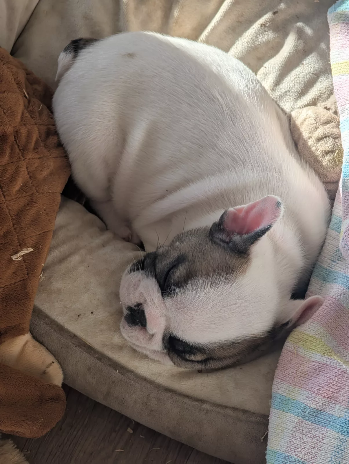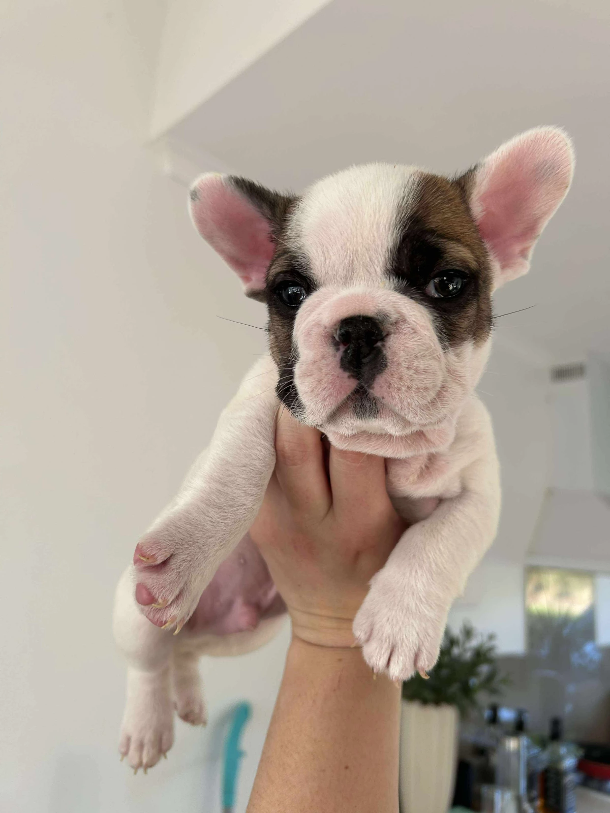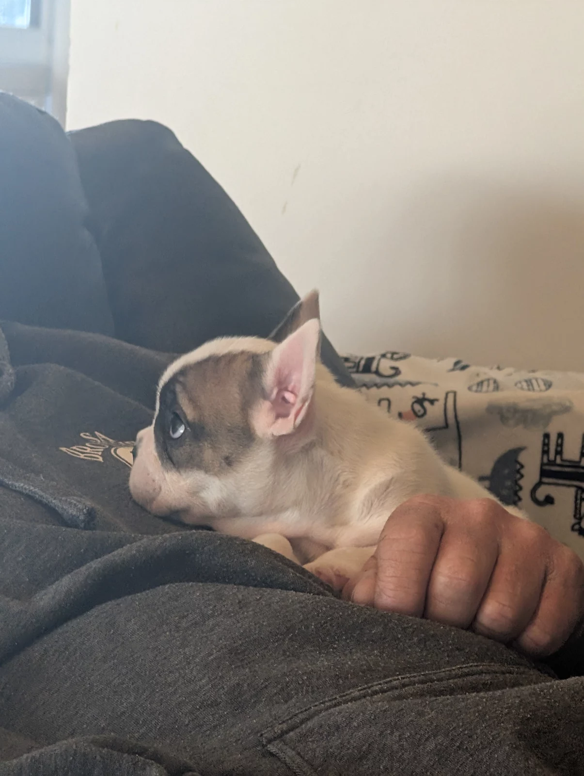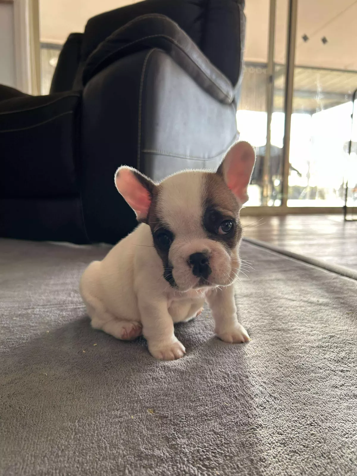 Huey has been hand raised by us along with his brother and sister since 3 days old. He is beautifully socialized pup, extremely smart and knows the routine. This makes for a cheeky little boy that will bring you many laughs and joy. He is partially potty trained on synthetic turf inside.