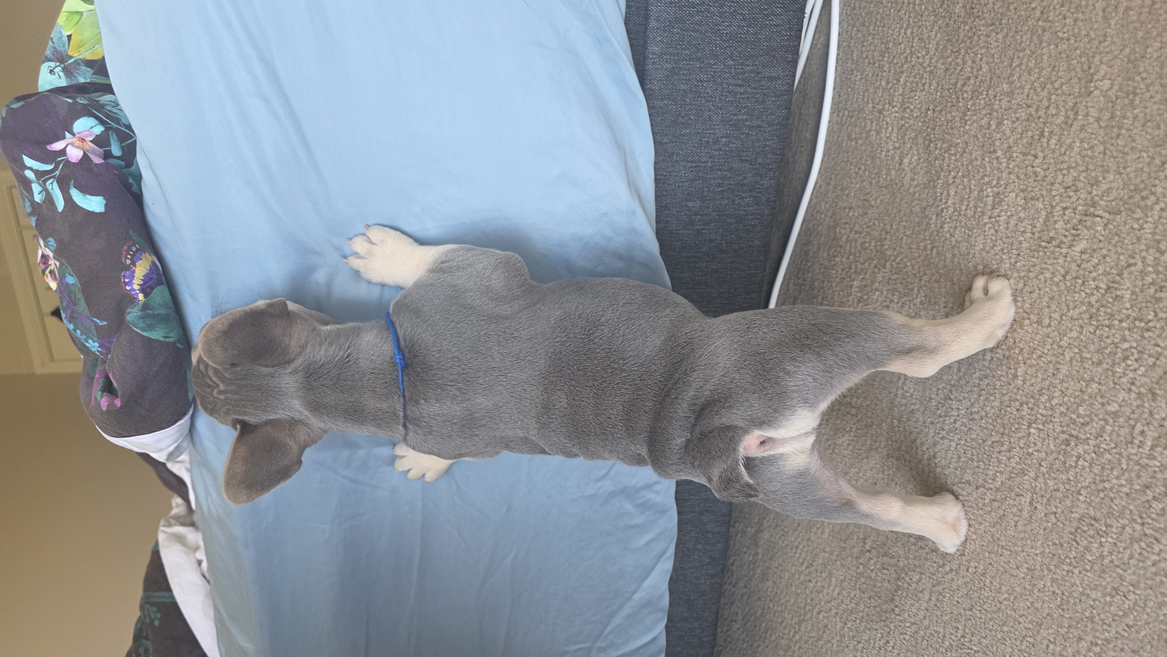 "Violet Crumble" is the smallest but the Bravest. Independent, smart girl that loves playing tug of war. Happy to be alone or sit by your side. Highly curious, therefore will be a great companion to train. Truly headstrong and confident in all the right ways. No nervous/anxious vibes from her at all.