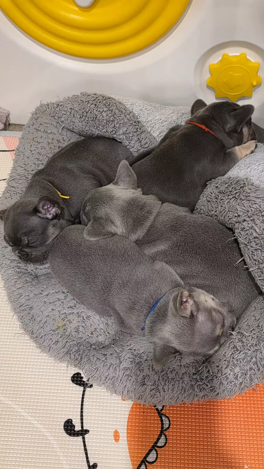 Very playful and love outdoors // Fed 3-4 times/day ( 6am, 2pm, 10pm - milk once in between feeds) on Hills Science Puppy kibble soaked with Pumpkin and blueberries // Taken to grass pads for Toilet training // Sleep area contains Heated pad or Bed to choose their temperature preference // toys rotated daily with a disinfection cycle (hot wash 60°c with Eucalyptus) sun dried and aired.