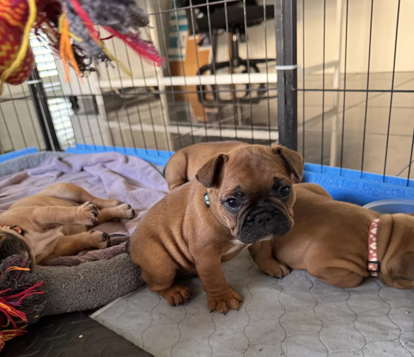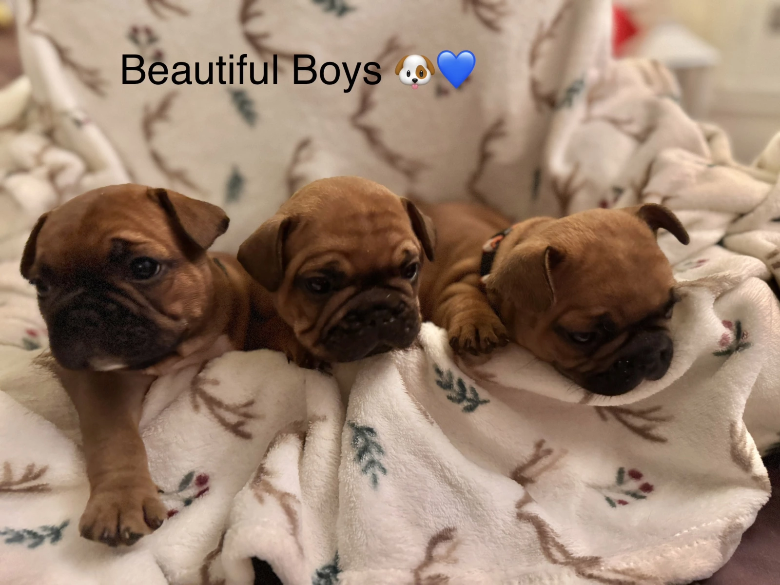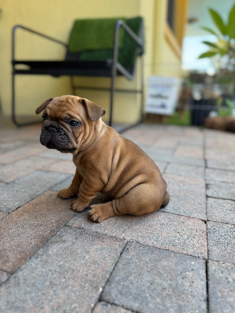 We have 3 gorgeous girls and 3 beautiful Frenchie boys. All are fawn-red pedigree with champion bloodlines. They are 6 weeks old and will be ready for their new homes by the 19th of January 26.