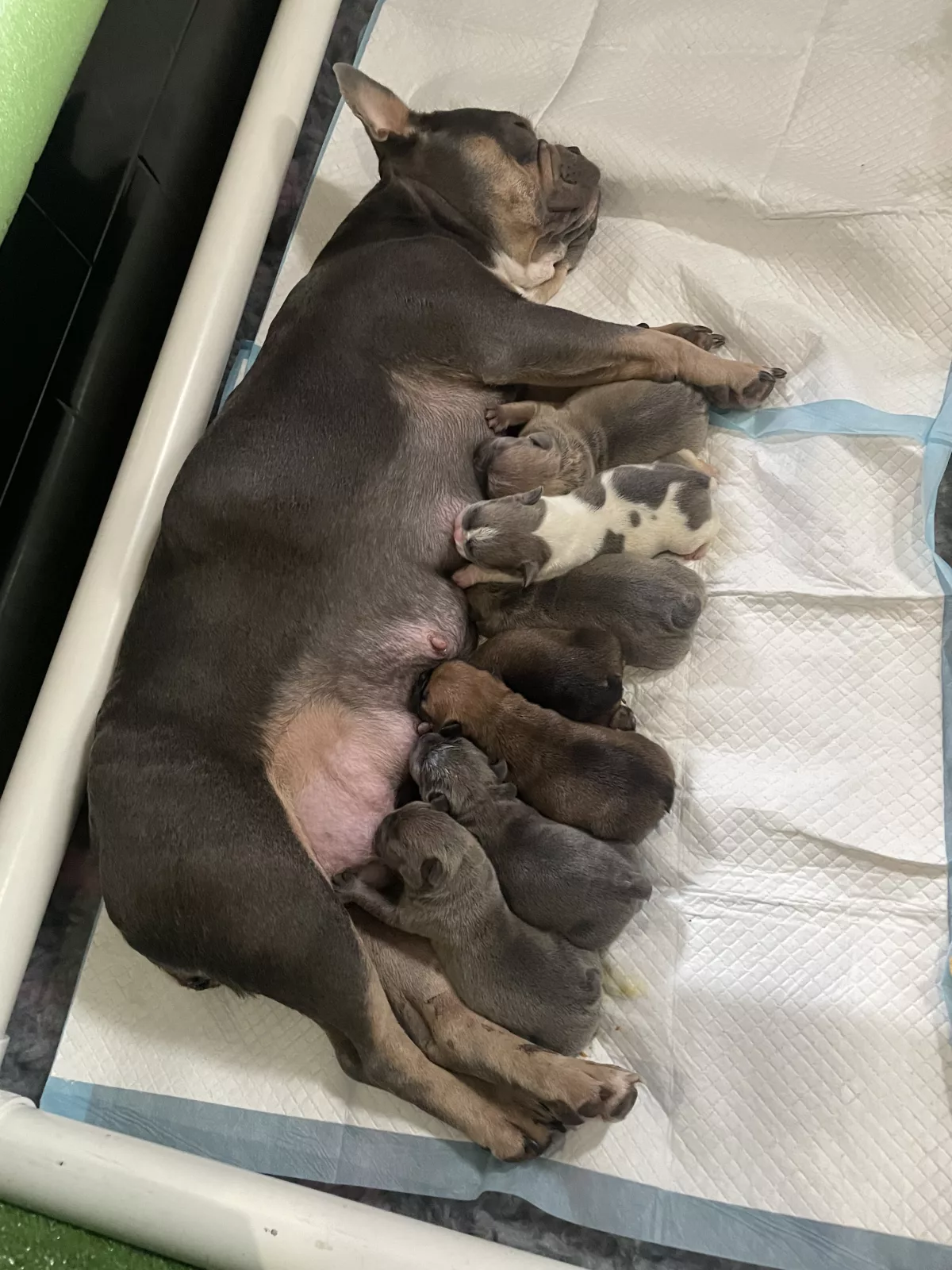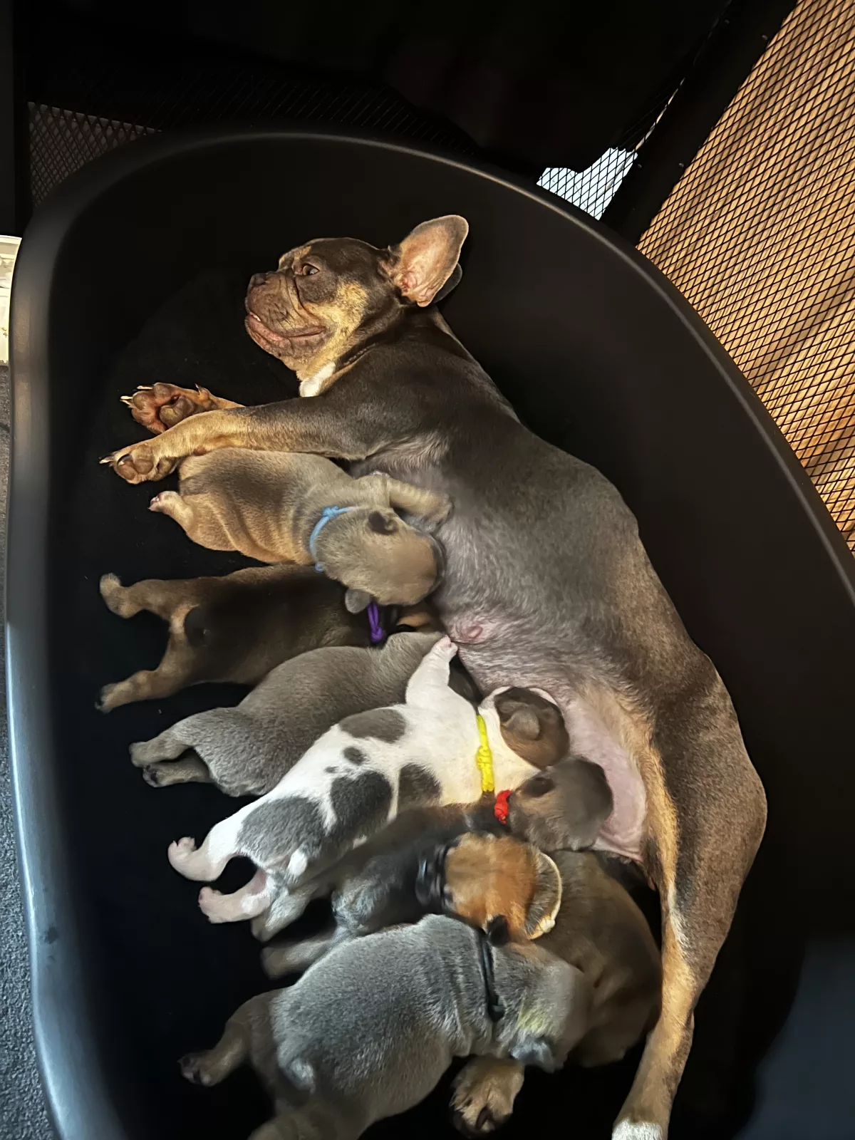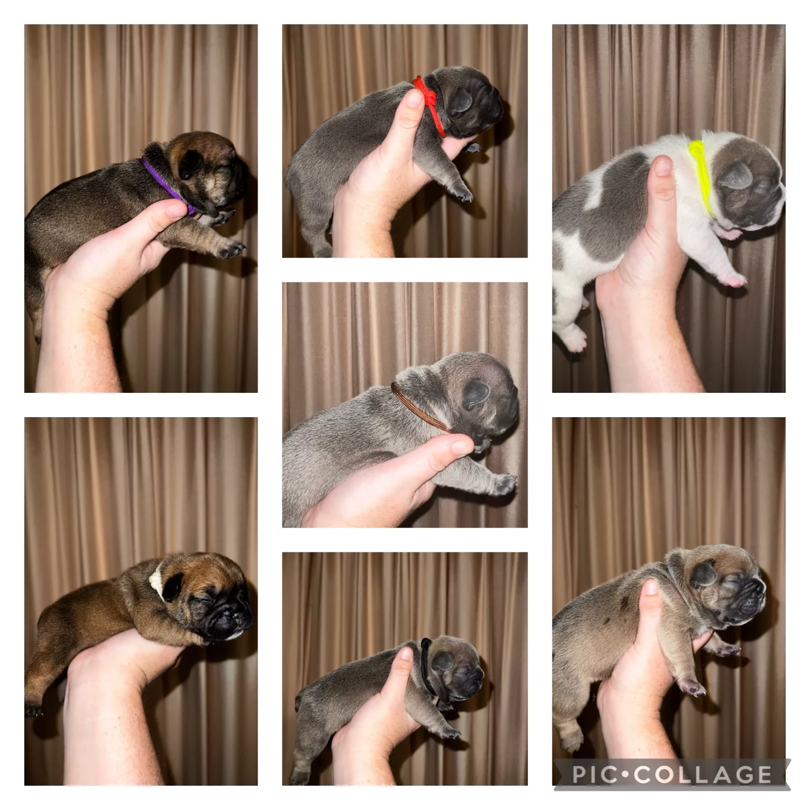 7 beautiful French Bulldog puppies available for their fur-ever homes at 8 weeks old on the 11th December 2023. These puppies come from pedigree purebred French Bulldogs and have been raised in a loving home environment with children, adults, and both mum and dad.