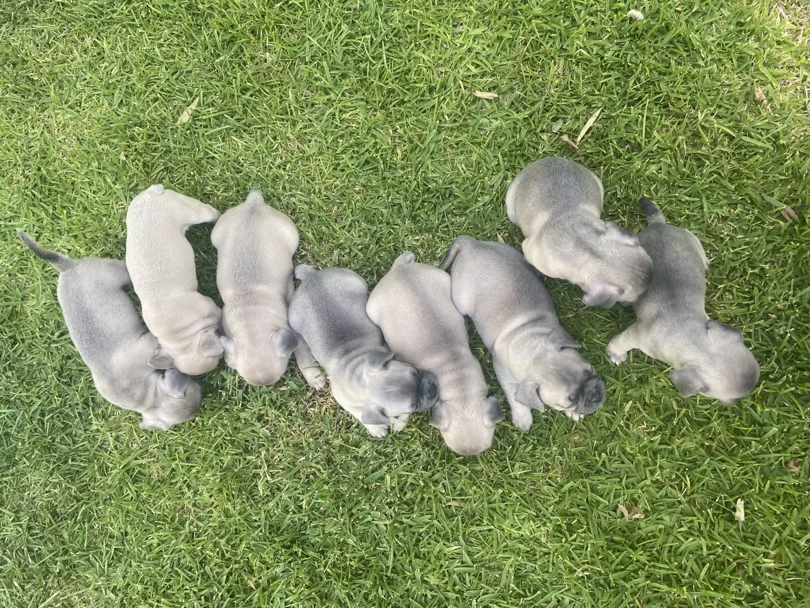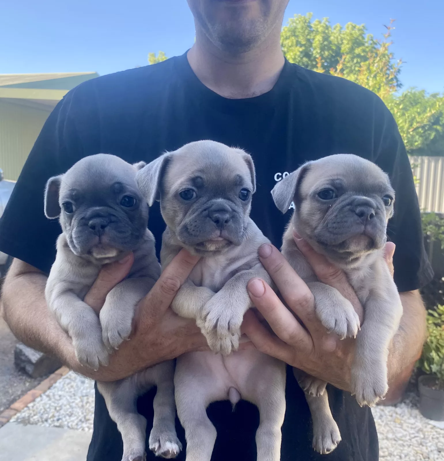 We have a beautiful litter of purebred Blue Fawn Sable French Bulldog puppies available, including 2 males and 2 females. These adorable puppies are due to go to their forever homes on 10th January. They are vaccinated, microchipped, and have been wormed every 2 weeks since birth. Each puppy has been thoroughly vet checked for peace of mind. Additionally, they have been DNA tested and cleared for Airways Distress Syndrome, and they only carry one copy of the DVL2 gene that can affect the spine. Some puppies are available with mains papers. We are proud members of the MDBA. Message Chris for more details.
