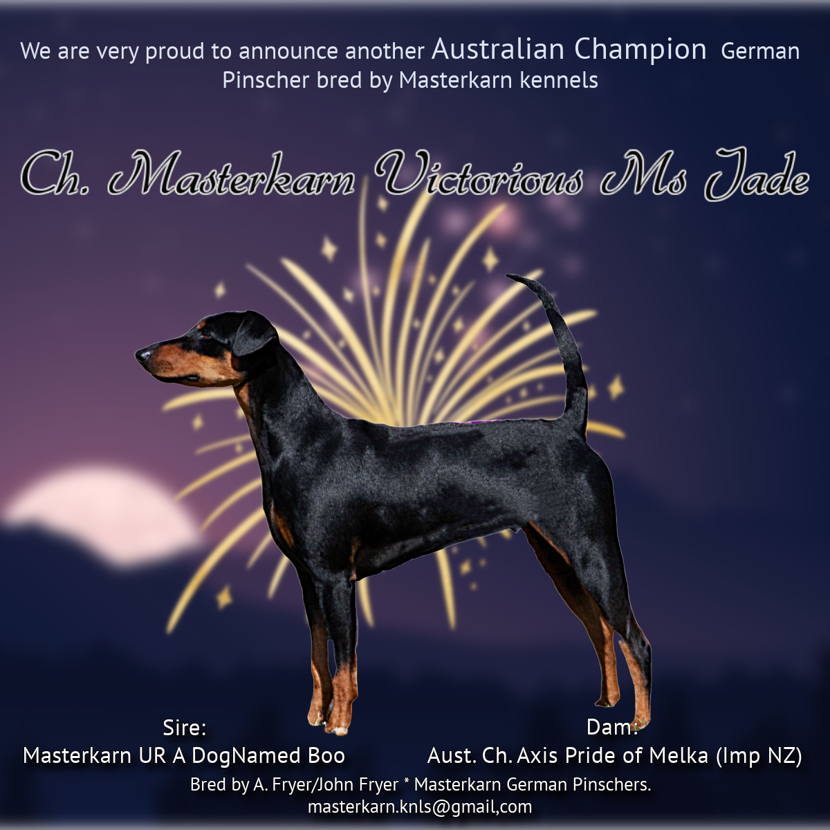 See our website for information on showing and everything German Pinscher. www.masterkarn.net
