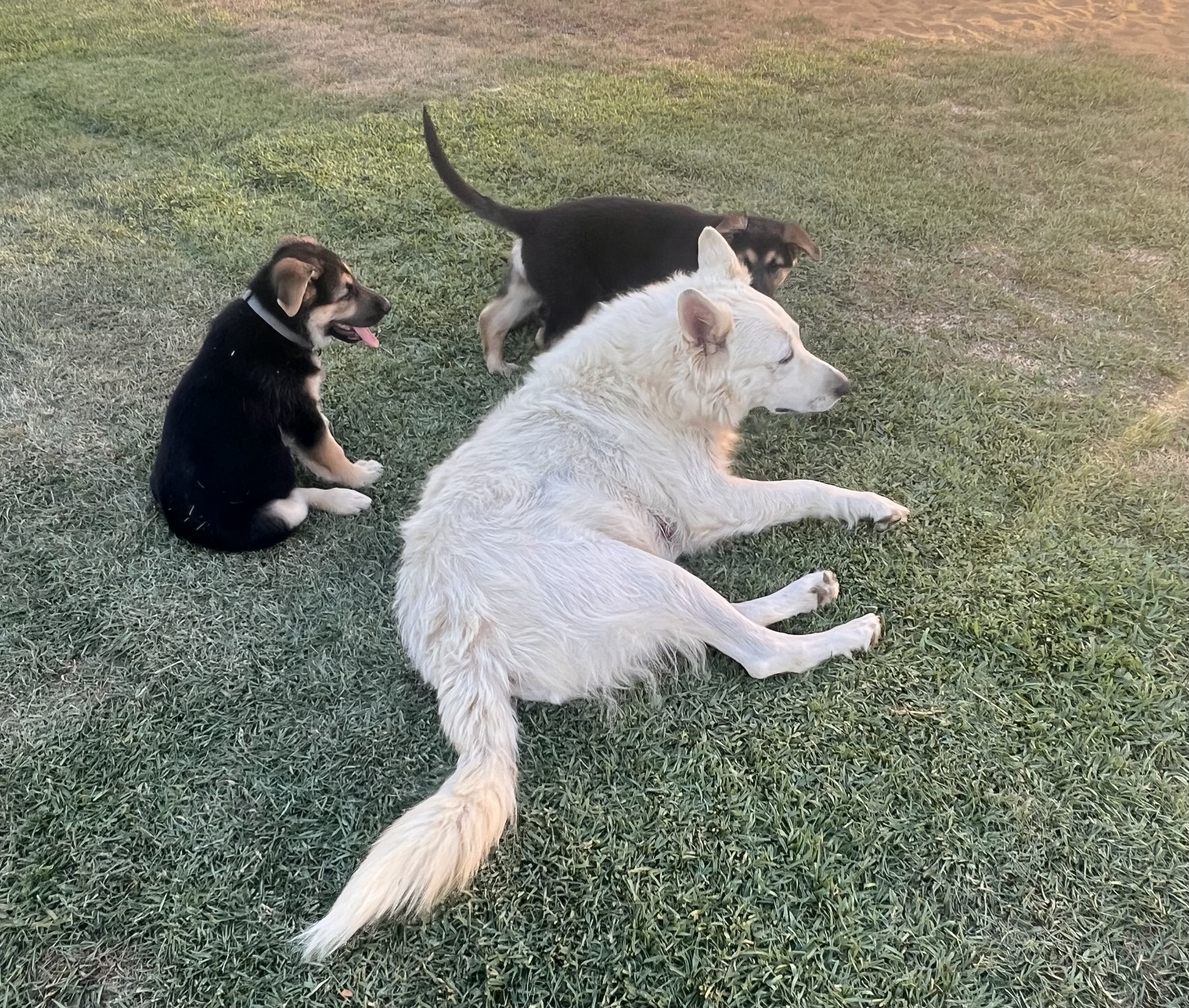 Dogs have access to: warm bedding, water at all times, ample space to exercise, natural light