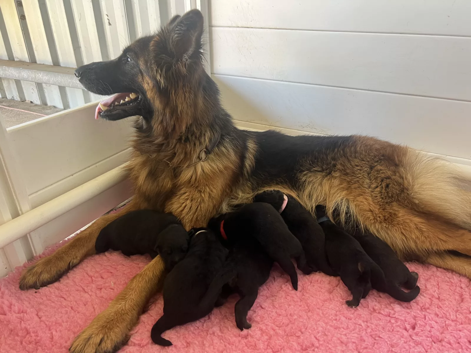 The Perfect Match: This litter has been thoughtfully bred to enhance the best qualities of both parents. Axel brings power and substance, while Annah contributes elegance and intelligence. Together, they create a combination of beauty and brains, while expanding genetic diversity and addressing the common issue of hindquarter over-angulation that you see regularly in the breed.